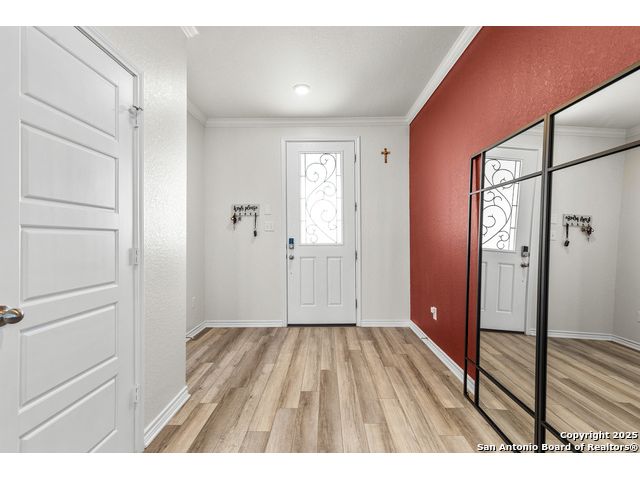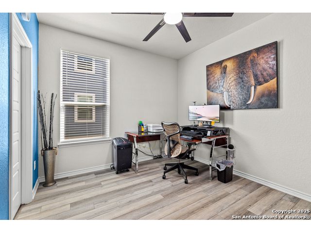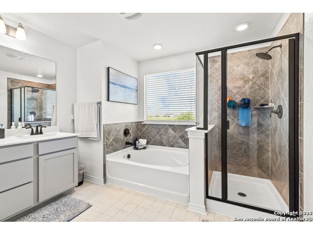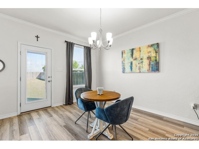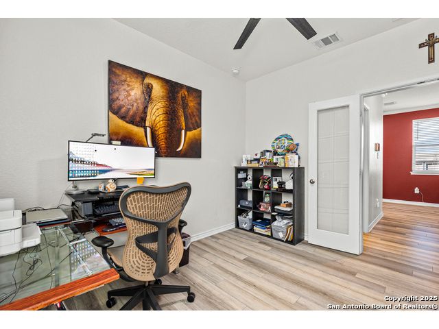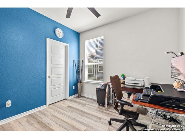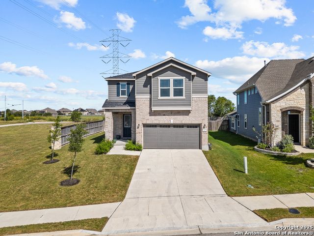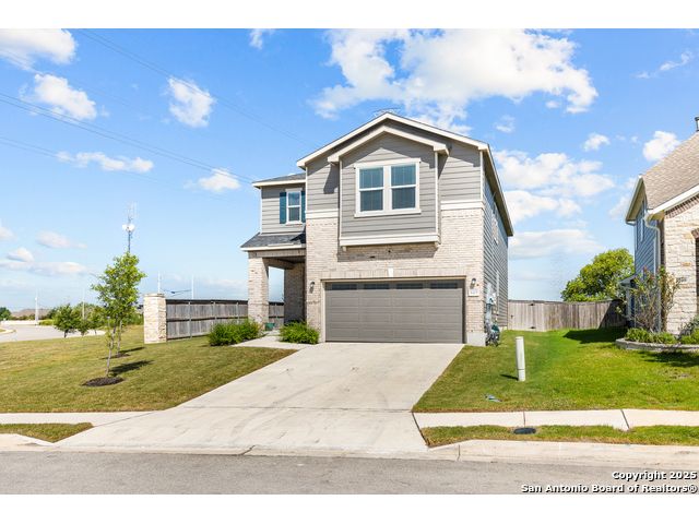 Welcome to 5205 Nature Path - Modern Comfort Meets Smart Living in Schertz, TX Tucked away on a premium corner lot with no backyard neighbors, this beautifully upgraded 4-bedroom, 2.5-bath home offers the space, style, and privacy you've been searching for. Built in 2021 by KB Homes, this 2,527 sq ft stunner features an assumable VA loan! Step inside to a light-filled, open-concept floor plan with luxury vinyl flooring throughout the first floor, creating a modern and low-maintenance living space. The heart of the home is the island kitchen, complete with stone countertops, a walk-in pantry, and ample space to gather and entertain. The seamless flow into the dining and living areas makes hosting a breeze. Downstairs, a flex bedroom (currently used as a study) offers the ideal setup for guests or remote work. Upstairs, you'll find the primary suite retreat with oversized closet space and a spa-inspired bath featuring a garden tub, separate shower, dual vanities, and abundant natural light. All secondary bedrooms are generously sized with oversized closets, and the laundry room is conveniently located upstairs. This home also comes complete with solar panels, helping reduce energy costs and increase efficiency. Other smart upgrades include a tankless water heater and energy-conscious construction throughout. Enjoy Texas evenings in the expansive backyard, with no rear neighbors and plenty of room to create your ideal outdoor oasis. Located in a peaceful neighborhood in Schertz, you'll have easy access to top-rated schools, shopping, dining, and major military hubs. Don't miss your chance to own this move-in ready gem with built-in value-schedule your private tour of 5205 Nature Path today!