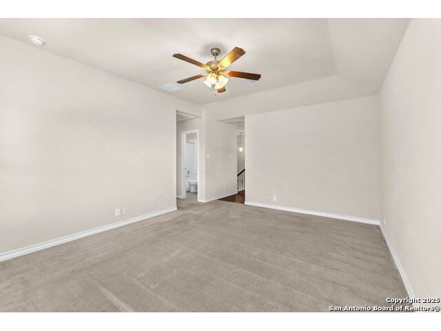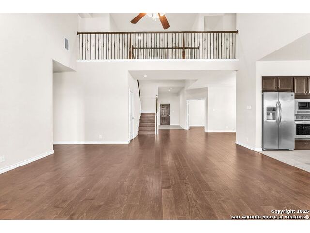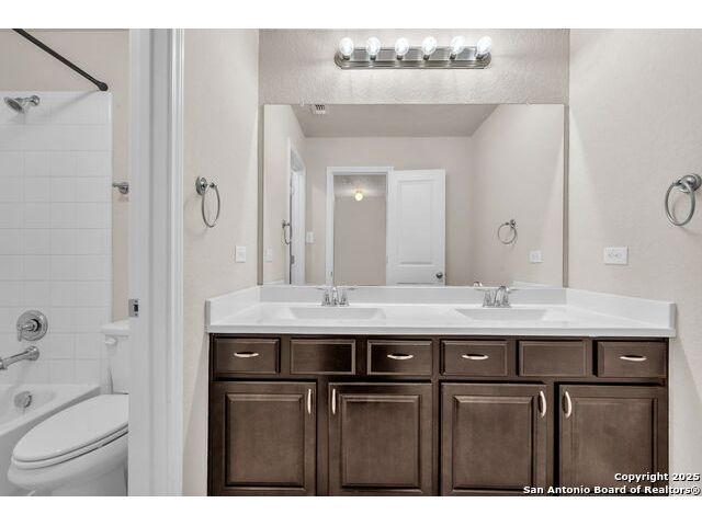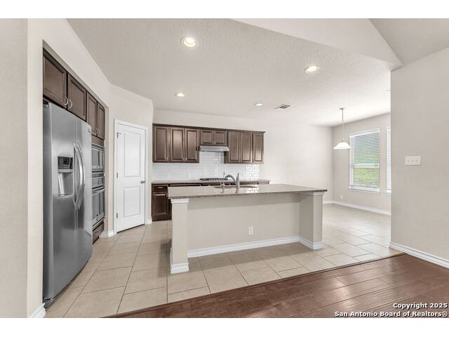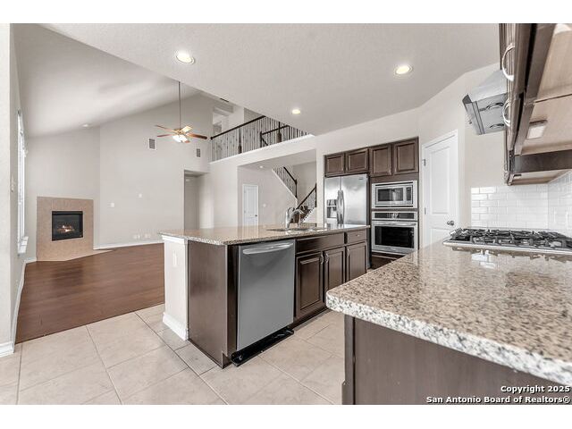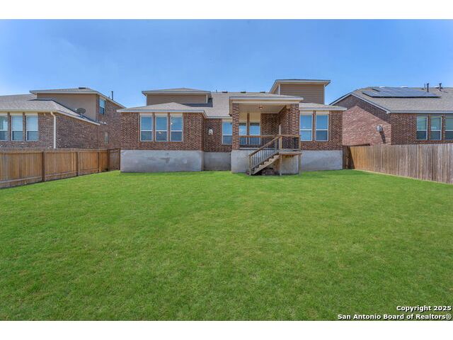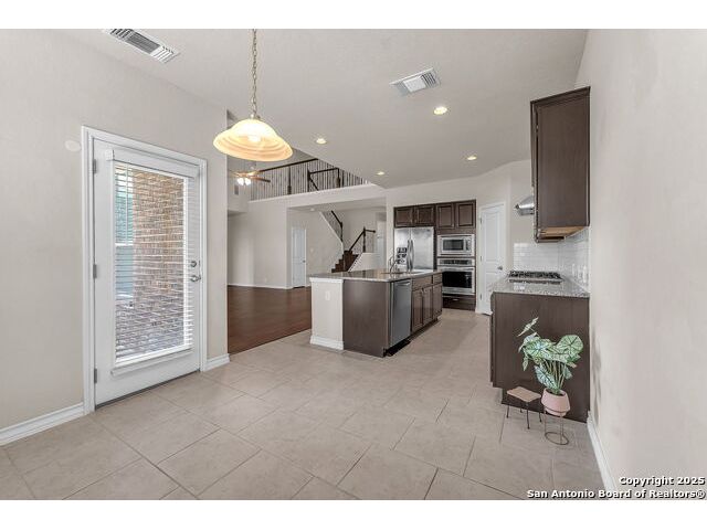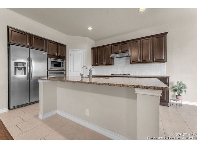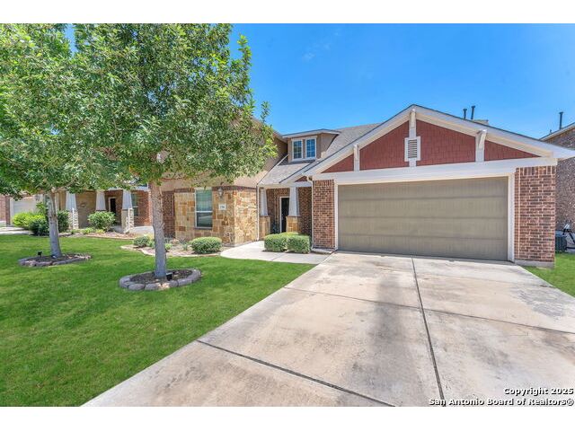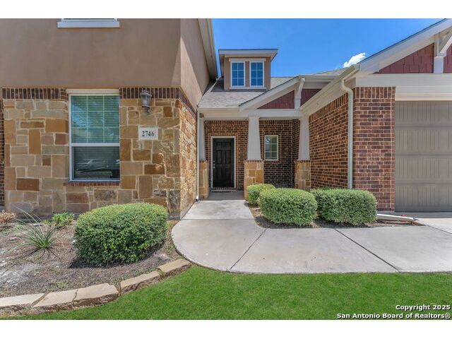 $10,000 incentive toward rate-buy-down or closing costs on a full price offer! Welcome to 2746 Sueno Point, a stunning Highland-built home nestled on a greenbelt lot in the desirable gated community of Ladera. This spacious 5-bedroom, 4-bathroom, private office residence offers over 3,300 square feet of thoughtfully designed living space and is move-in ready. Inside, you'll find an open-concept floor plan with soaring ceilings, abundant natural light, and beautiful finishes throughout. The gourmet kitchen is equipped with granite countertops, stainless steel appliances, ample cabinetry, and a large island, seamlessly connecting to the dining and living areas for easy entertaining. Ideal for multigenerational living or hosting guests, the main floor features both a spacious primary suite and a private guest suite. The primary retreat offers a luxurious en suite bathroom with dual vanities, a soaking tub, separate shower, and a generous walk-in closet. Upstairs, you'll find two additional bedrooms, two full baths, and TWO versatile loft-style game room or media space. Outdoors, enjoy the privacy of a fully fenced backyard with a covered patio and a great yard that backs to a peaceful greenbelt. The three-car tandem garage includes epoxy flooring and space for storage, a workshop or a home gym. Additional upgrades include a water softener, reverse osmosis system, two water heaters, and zoned HVAC systems. Located within the sought-after Medina Valley ISD and just minutes from Loop 1604 and Highway 90, this home also grants access to fantastic neighborhood amenities, including a pool, clubhouse, jogging trails, sports court, and playground. With its spacious layout, quality finishes, and unbeatable location, this home offers comfort, style, and convenience-ready for you to move in and make it your own.