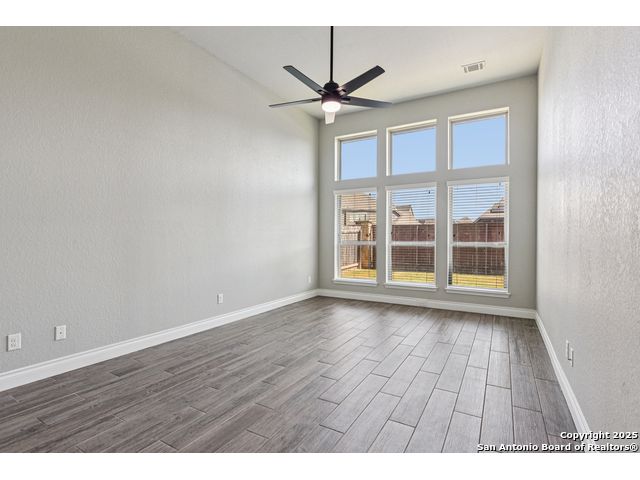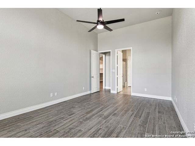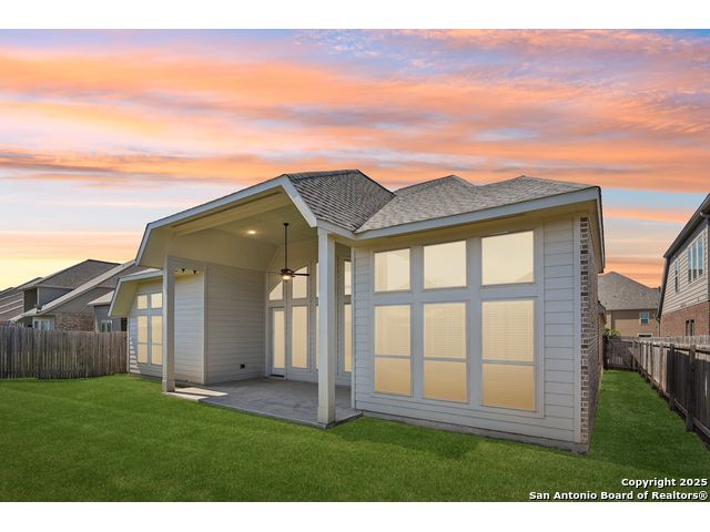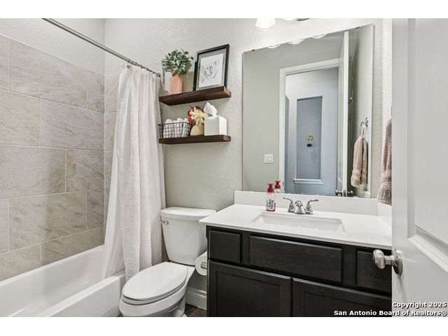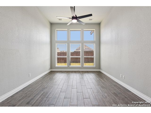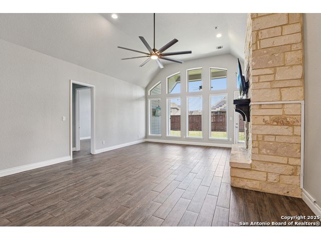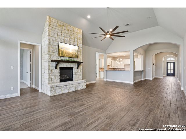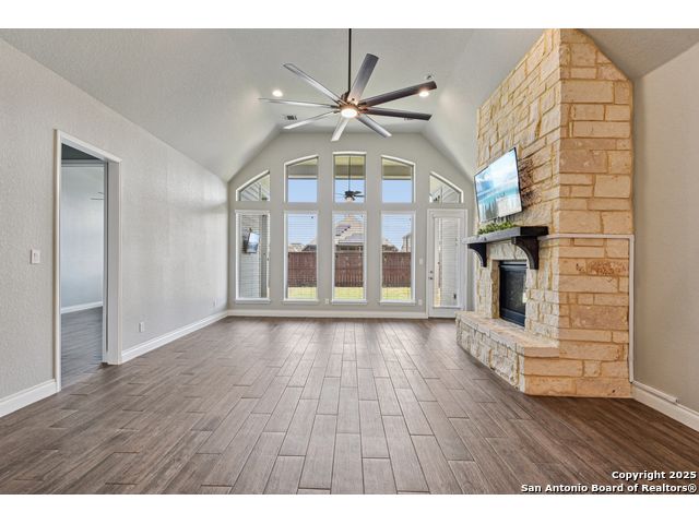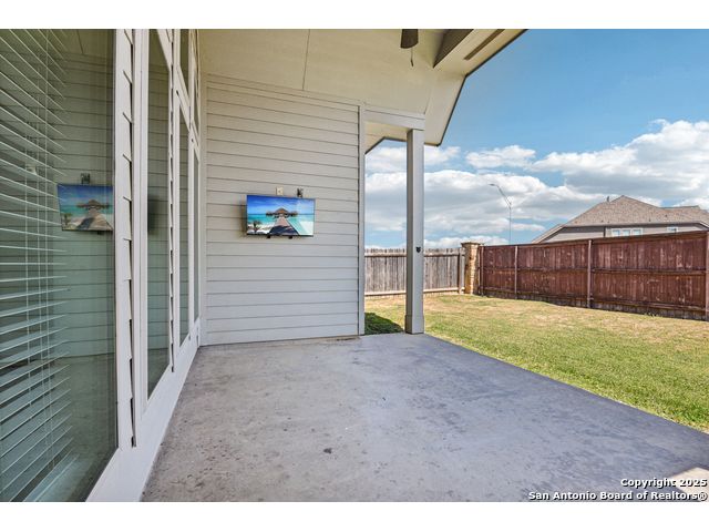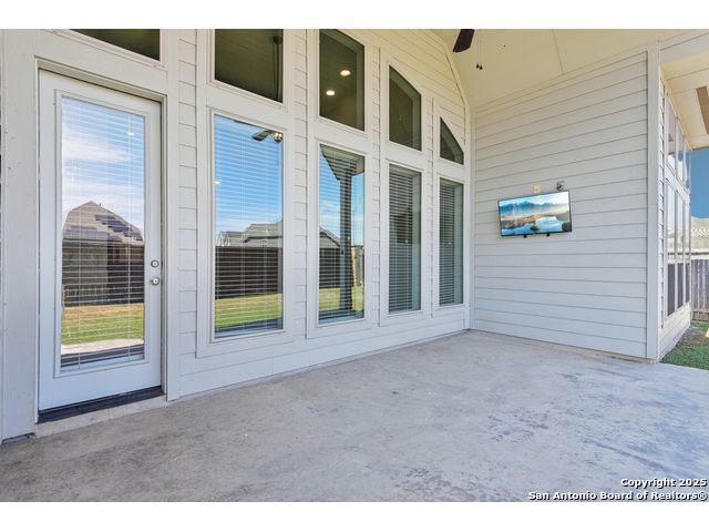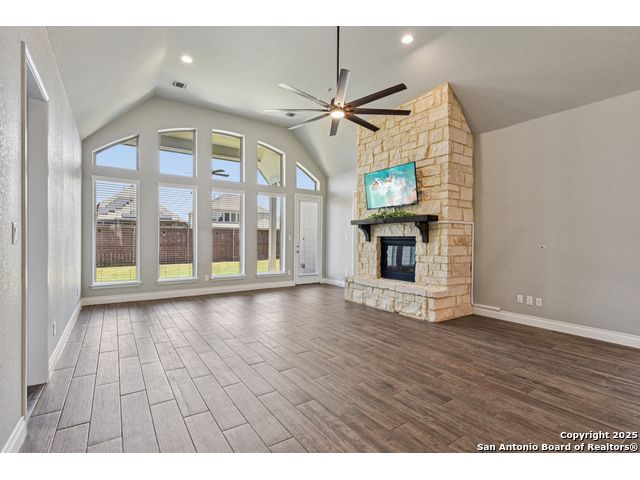 Special Financing, 2-1 Buydown Available. Reach out for more information. This beautifully maintained 4-bedroom, 3-bathroom Perry home features a 3-car tandem garage and upgrades throughout. Step through the elegant 8-foot entry door into a spacious foyer with soaring ceilings and an abundance of natural light Enjoy upgraded lighting and fixtures, along with wood-look porcelain tile in the dedicated office and formal dining room. The open-concept living space includes a generous family room with a cozy fireplace and upgraded ceiling fans throughout the home for year-round comfort. The gourmet kitchen is a chef's dream, offering built-in appliances, a bar-height eating area, a large center island, and a spacious walk-in pantry. A dedicated game/media room provides additional space for relaxation or entertainment The luxurious primary suite boasts large windows, an en-suite bath with a separate garden tub, an oversized walk-in shower, dual vanities, and a spacious walk-in closet. Step outside to a covered patio complete with a mounted TV - perfect for entertaining guests. Zoned to Northside ISD and conveniently located near shopping, dining, and entertainment, including SeaWorld.