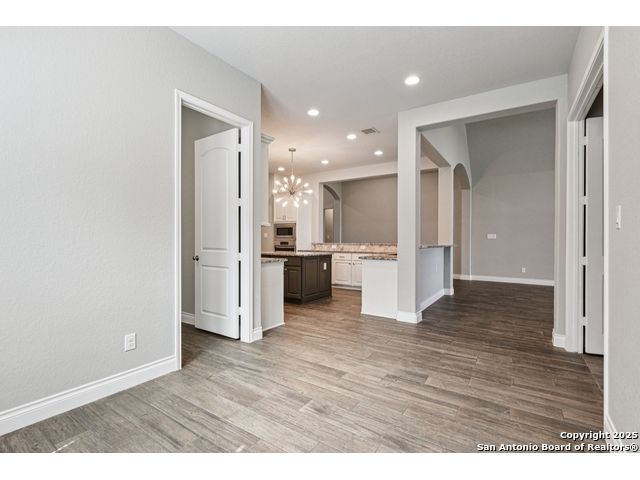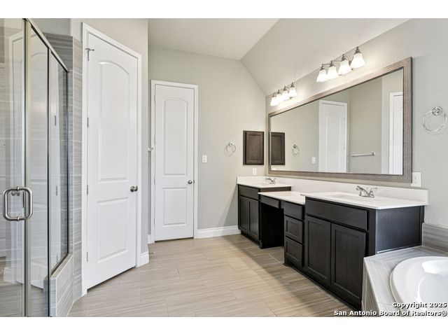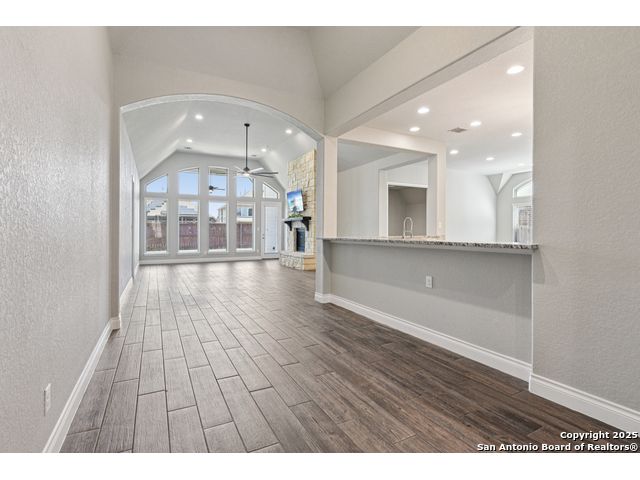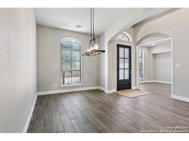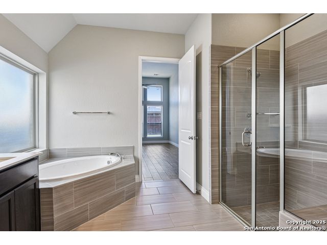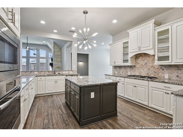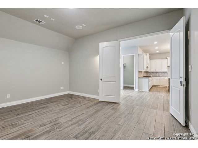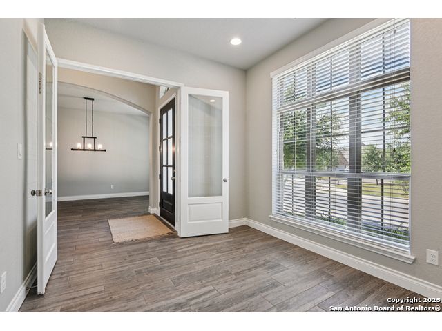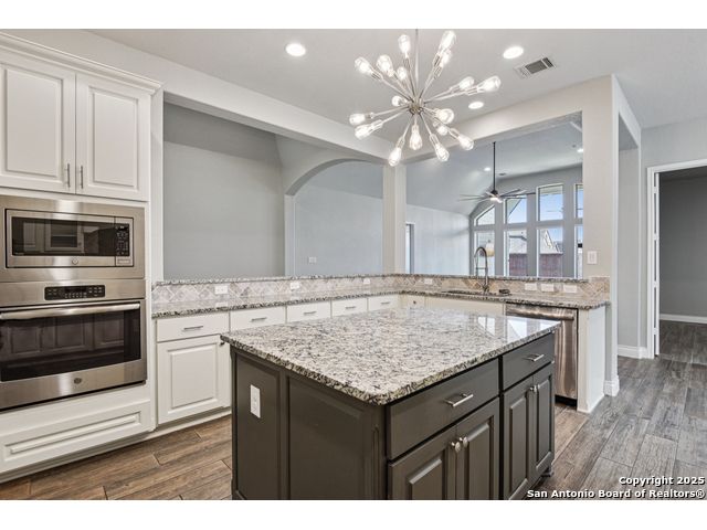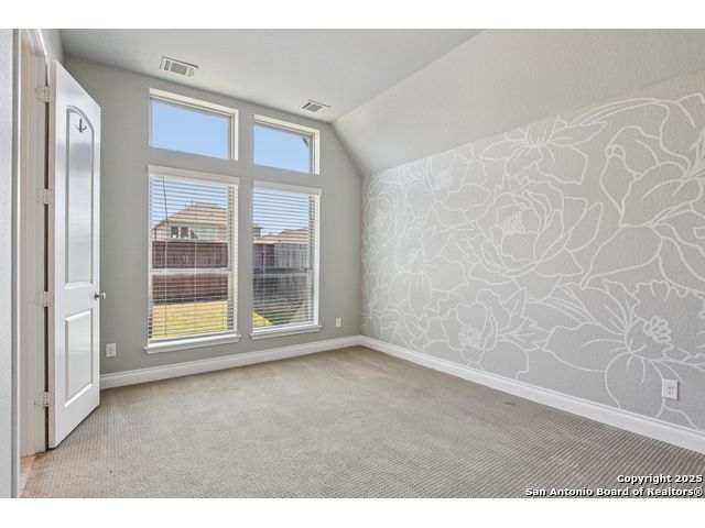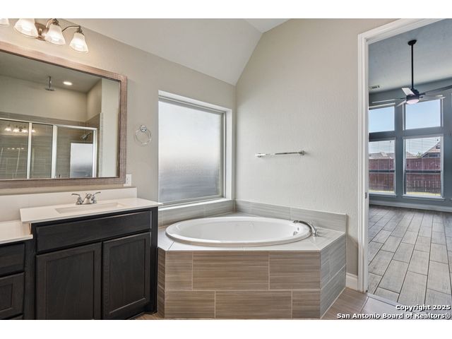 Special Financing, 2-1 Buydown Available. Reach out for more information. This beautifully maintained 4-bedroom, 3-bathroom Perry home features a 3-car tandem garage and upgrades throughout. Step through the elegant 8-foot entry door into a spacious foyer with soaring ceilings and an abundance of natural light Enjoy upgraded lighting and fixtures, along with wood-look porcelain tile in the dedicated office and formal dining room. The open-concept living space includes a generous family room with a cozy fireplace and upgraded ceiling fans throughout the home for year-round comfort. The gourmet kitchen is a chef's dream, offering built-in appliances, a bar-height eating area, a large center island, and a spacious walk-in pantry. A dedicated game/media room provides additional space for relaxation or entertainment The luxurious primary suite boasts large windows, an en-suite bath with a separate garden tub, an oversized walk-in shower, dual vanities, and a spacious walk-in closet. Step outside to a covered patio complete with a mounted TV - perfect for entertaining guests. Zoned to Northside ISD and conveniently located near shopping, dining, and entertainment, including SeaWorld.
