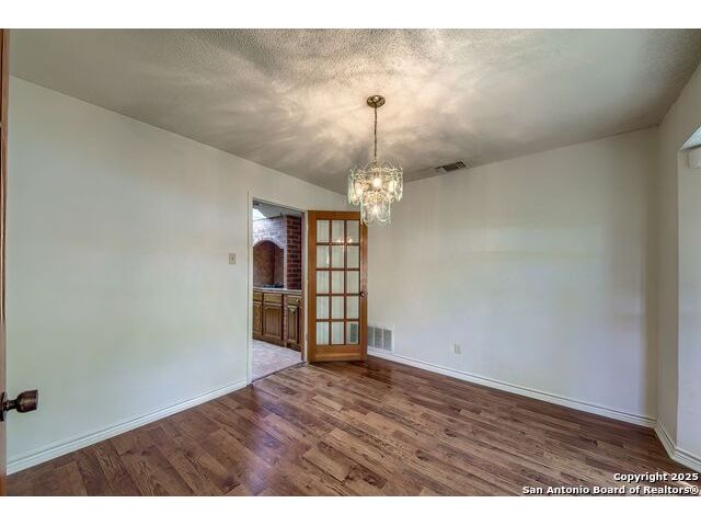 Great home! Located on a large treed lot with a pool in sought after McCreless Meadows. McCreless Meadows is a neighborhood tucked away near 410 & 37 that has maintained it's excellence over the years. The mature trees and custom homes speak for themselves. This home features four bedrooms, three full baths, and a half bath. The spacious living room with tiled floors, lots of windows, beautiful brick fireplace and a built-in bar is perfect for entertaining. The kitchen has a fantastic brick feature built around the electric cooktop and double ovens. There are plenty of cabinets and a nice size window to let the natural light in. The primary bedroom has a sitting room, and a roomy walk-in closet that you will absolutely love. Primary bathroom has a tub with jets and separate shower. The fourth bedroom can always be used as an office, playroom, workout room, and the list goes on and on. All your bar-b-ques, great covered patio and amazing refreshing pool with diving board, you and your guest will never want to leave. Two car side entry garage with parking space galore on the extremely long driveway. Parking for all your family and friends this charming home and lot has something for everyone! Close to Texas A & M San Antonio, Palo Alto College, Brooks City Base and Mission Trails Hospital and Medical Center. WELCOME HOME!