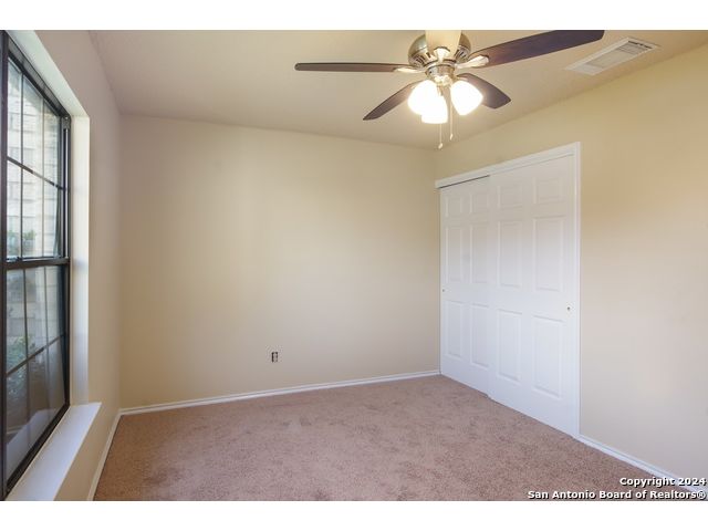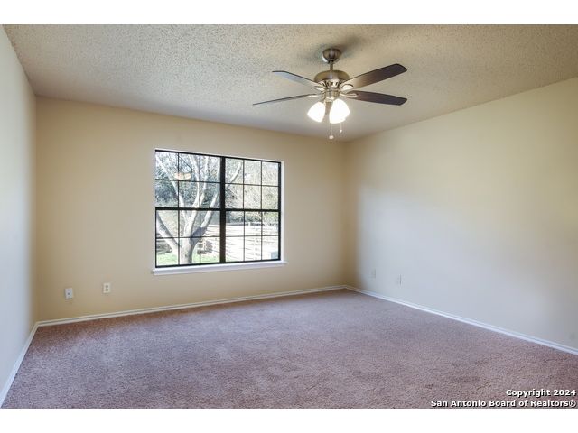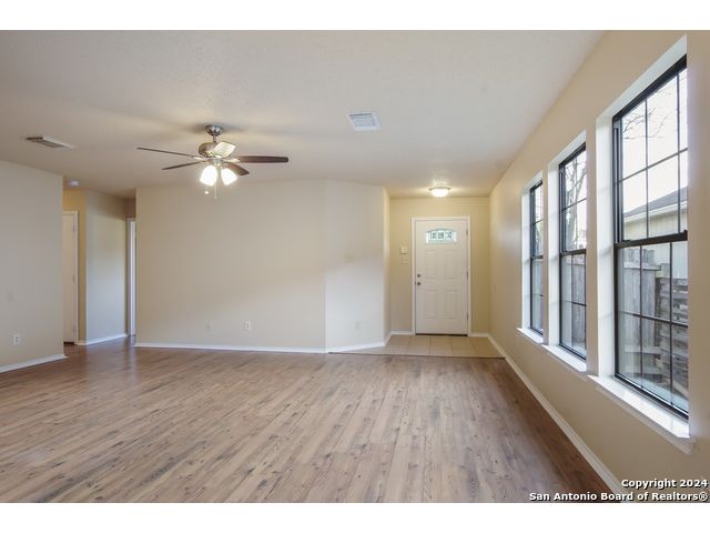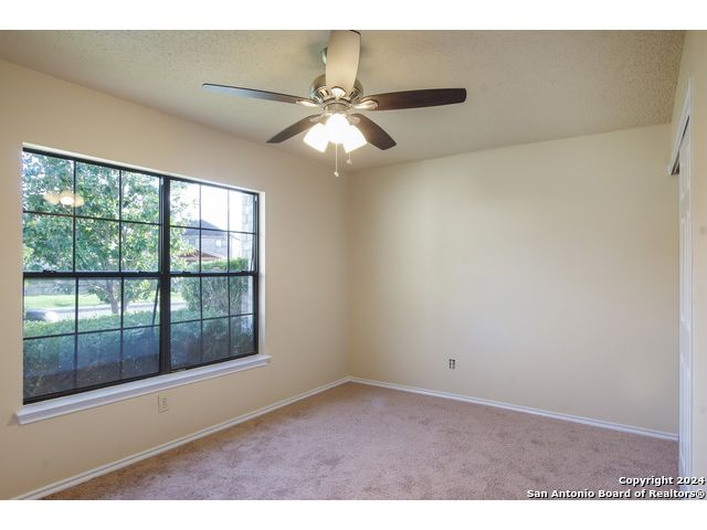 Welcome to this delightful single-story home, offering a comfortable and convenient living experience. With three bedrooms and two bathrooms, this residence is thoughtfully designed to meet your needs. The attention to detail, including ceiling fans throughout, adds a touch of comfort to every room. As you step inside, you'll notice the perfect blend of functionality and style. The main areas of the house feature beautiful laminate flooring and tile, providing a sleek and modern look while ensuring easy maintenance. The bedrooms are adorned with plush carpeting, creating cozy spaces for relaxation and rest. The open floor plan allows for seamless interaction between the living room, dining area, and kitchen, making it ideal for both daily activities and entertaining. The well-appointed kitchen boasts ample counter space makes meal preparation a breeze. The adjacent eat-in breakfast area offers a cozy spot to enjoy casual meals. One of the highlights of this property is its serene location, as it backs up to a greenbelt. Enjoy the tranquility and privacy with a sizeable backyard providing plenty of room for outdoor activities and the potential for creating your own private oasis.