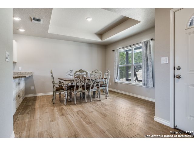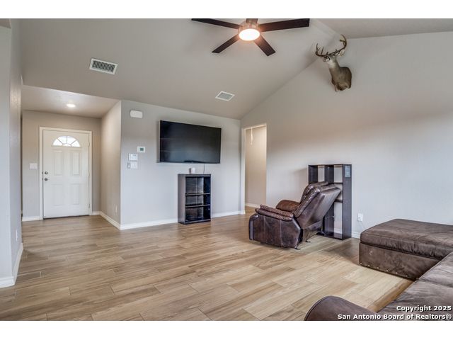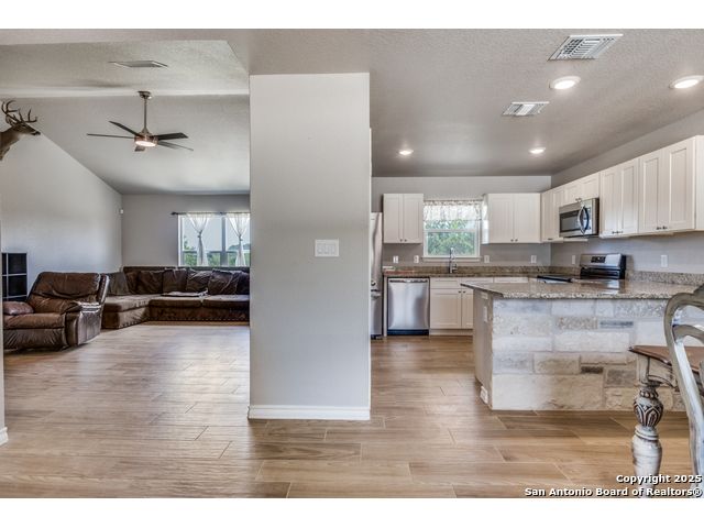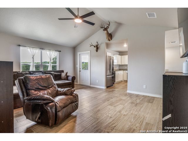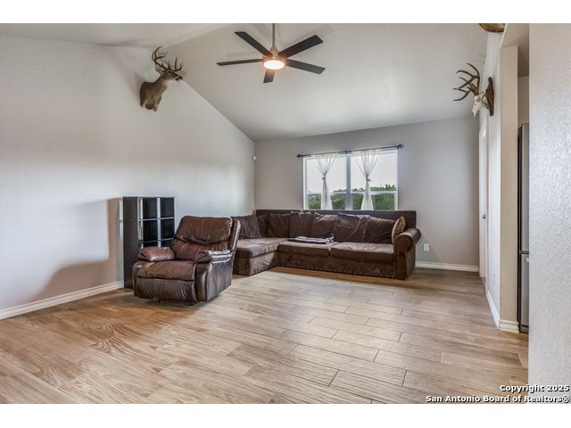 Peaceful living meets small-town country charm! Enjoy beautiful sunsets and the peaceful privacy you won't find in town- all just minutes from local schools, shopping and main highways! This adorable and well maintained 3 bedroom, 2 bath home is less than 2 years old. The home features ceramic wood-look tile flooring throughout, granite countertops in kitchen and all bathrooms, an abundance of cabinet and counter space in the kitchen, high vaulted ceiling in the living room, step-up ceiling in the Dining Room and Primary Bedroom, and walk-in closet in Primary Bedroom. Outside you will find covered front and back porches and a spacious fenced in back yard, perfect for entertaining and room for your children or pets to run and play. No mandatory HOA! No back neighbors as the home backs up to a 94 acre ranch!