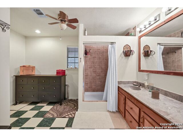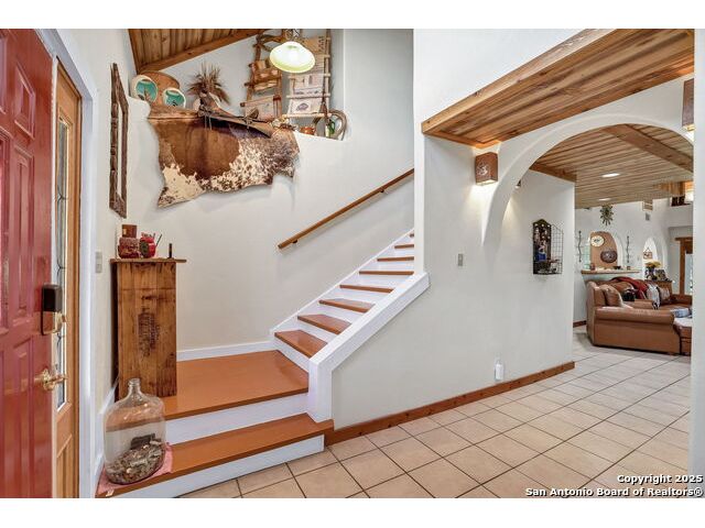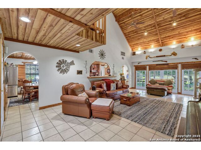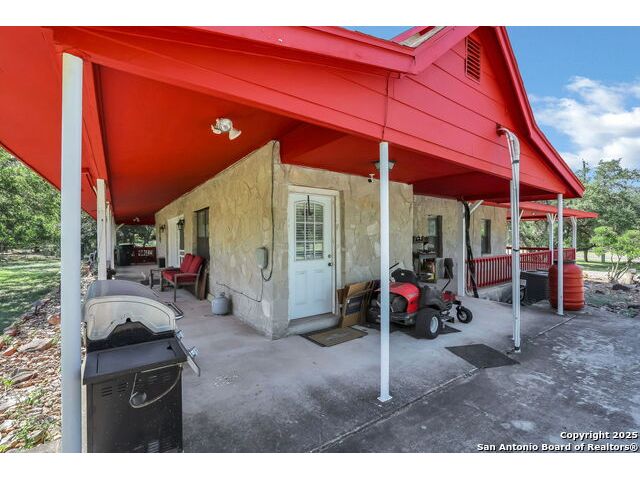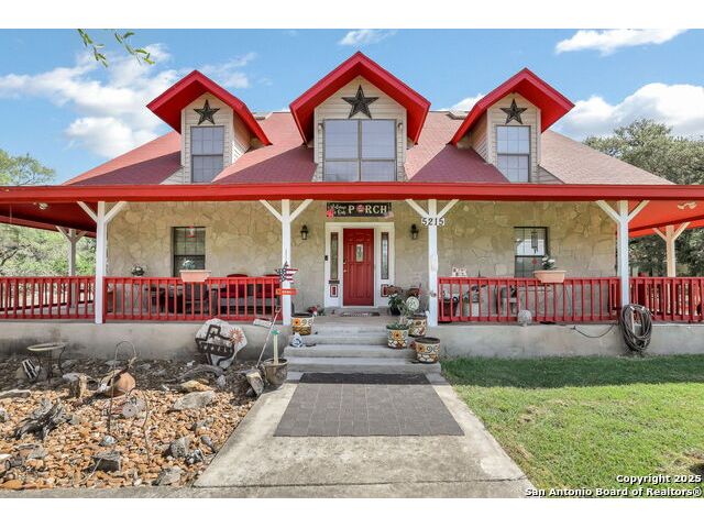 Welcome to your perfect retreat in the heart of Bulverde! Nestled on a 1.227-acre lot with mature trees and wide-open space, this 4-bedroom, 3.5-bathroom home offers the perfect blend of comfort and functionality. Step inside and be captivated by the soaring ceilings with rustic natural wood shiplap and cedar cross posts, creating a warm and inviting atmosphere. The spacious kitchen has plenty of cabinet space, exposed brick, a breakfast bar, and sleek stainless-steel appliances, making it a dream for home chefs and entertainers. The dining room is being used as a home office/home gym. Double primaries, one up and one down, offer versatility and plenty of options. Above two of the upstairs rooms, find 300 plus square feet of built in storage or the option of finishing the space out for a 3rd story loft. Step outside to enjoy views of the hill country from your 360-degree wrap around patio, perfect for sipping morning coffee or hosting weekend gatherings. The expansive yard features 2 sheds, mature shade trees, a large animal pen, and plenty of room to roam-ideal for gardening, pets, or outdoor fun.