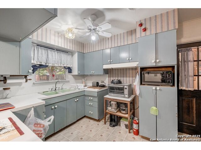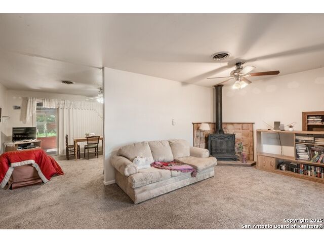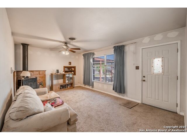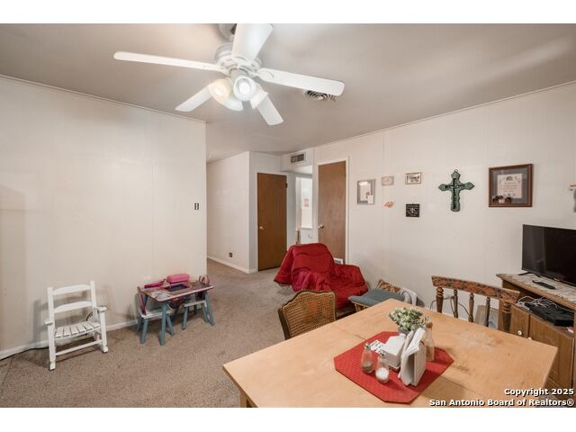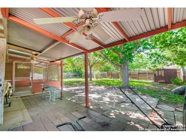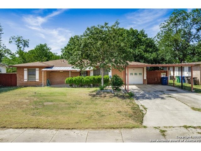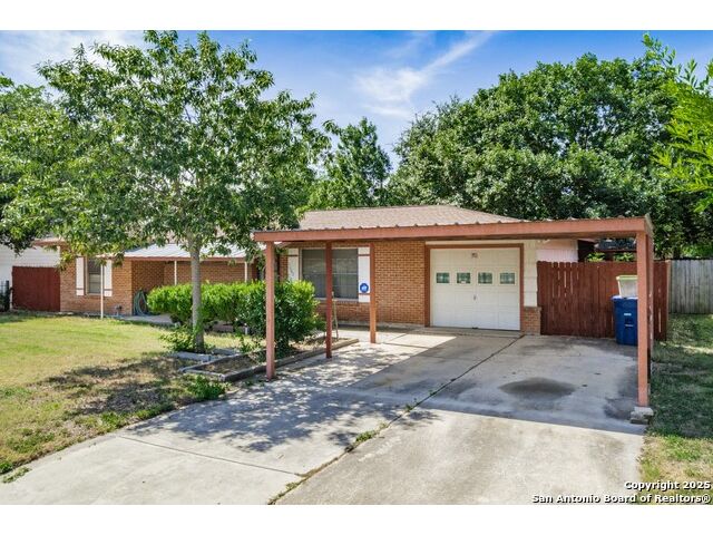 This 3-bedroom, 1.5-bath, single-story home offers 1,300 sq ft of living space on a 0.20-acre lot, perfectly positioned right in front of Legacy of Educational Excellence (LEE) High School's football field. Enjoy the unique benefit of being just steps from the newly updated stadium, offering a front-row view of games, events, and easy access to walking tracks and athletic facilities. A covered front porch welcomes you inside, where the living room features a cozy fireplace and flows into the dining and kitchen combo. The kitchen offers tile flooring for easy maintenance, while the rest of the home is carpeted for comfort. The primary bedroom includes its own closet and ensuite bath with a single vanity and shower. Additional features include a 1-car attached garage, a 2-car attached carport, and a spacious screened patio ideal for relaxing or entertaining. The large backyard is fully enclosed with a wooden privacy fence, offering plenty of space for outdoor activities. With its prime location across from the stadium and close to shopping, dining, and commuter routes, this home combines everyday convenience with a one-of-a-kind setting in the heart of the North Side.