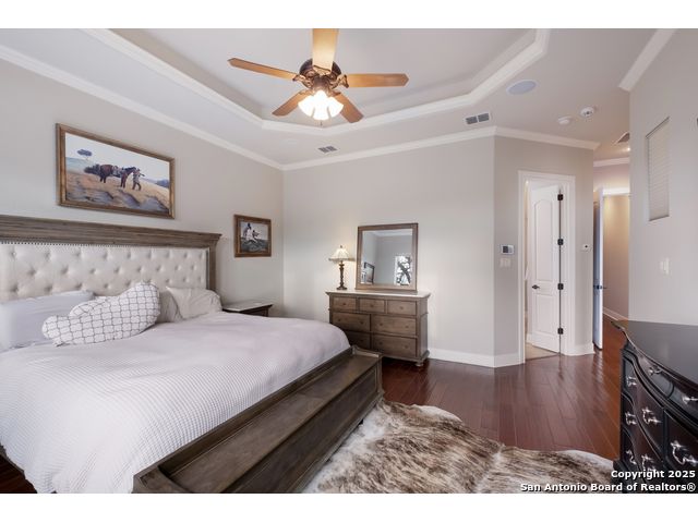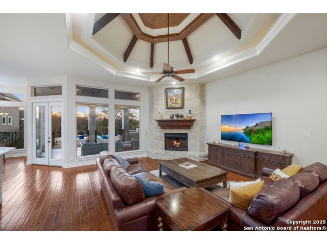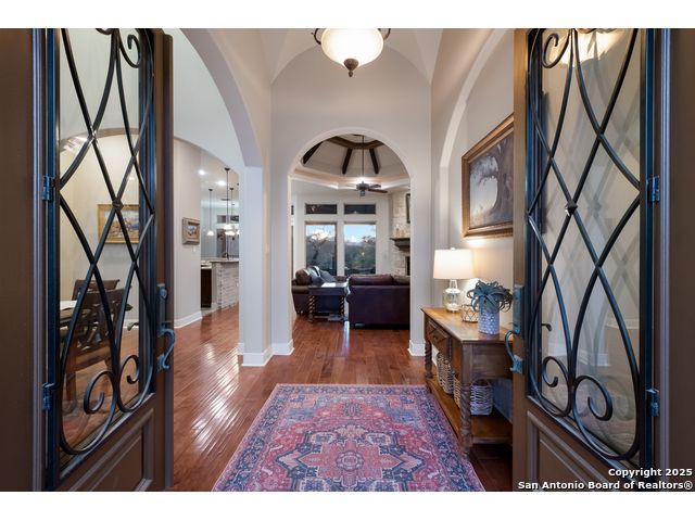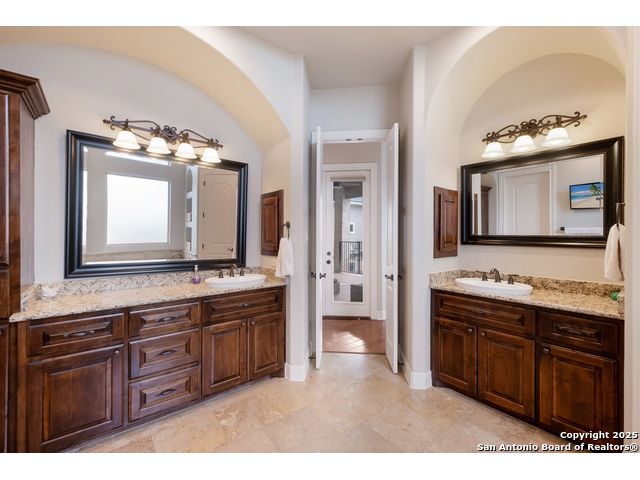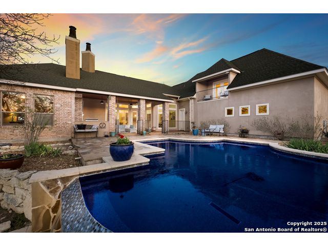 Discover this beautiful four bedroom home, complete with an office that can effortlessly serve as a fifth bedroom. Each room, including the office, boasts its own bathroom and walk-in closet. The stunning design features a first-floor media room for your entertainment needs. The 1.453 acre yard is terraced and low-maintenance, with breathtaking views of the Boerne skyline. Outside, enjoy the infinity edge pool and built-in grill, perfect for gatherings. Located just minutes from the soon-to-be-built Baptist Health System hospital, this home offers both luxury and convenience.