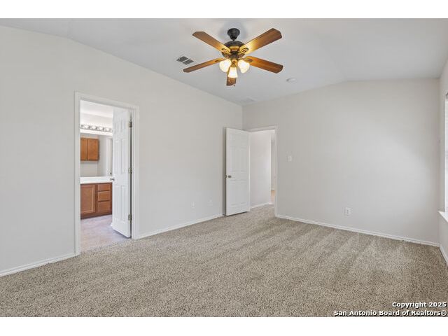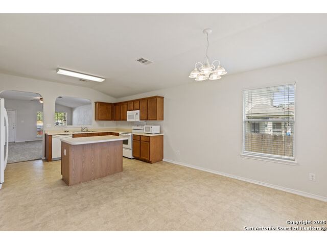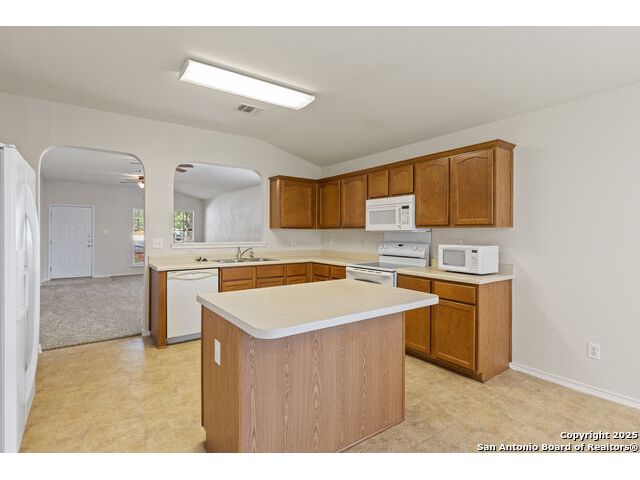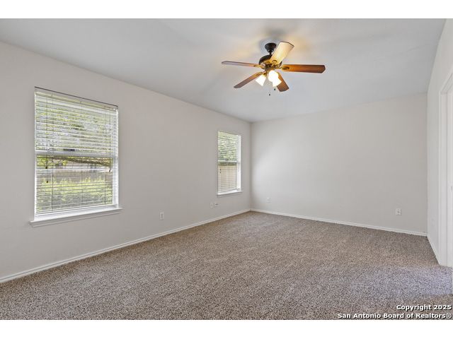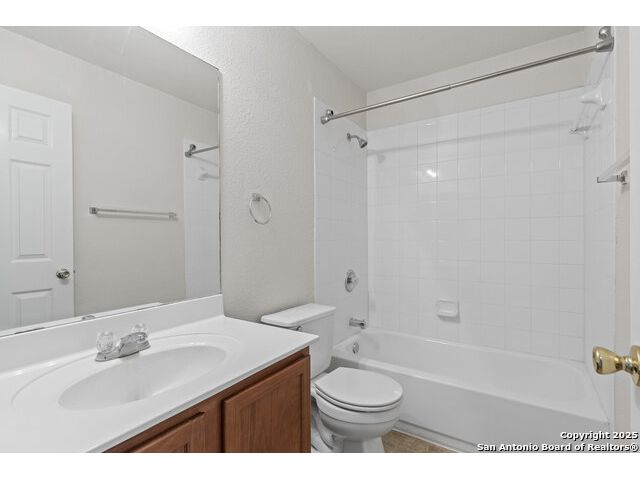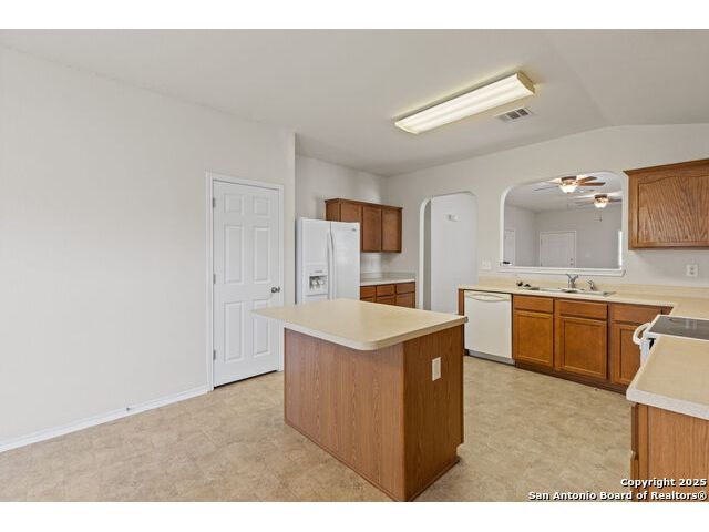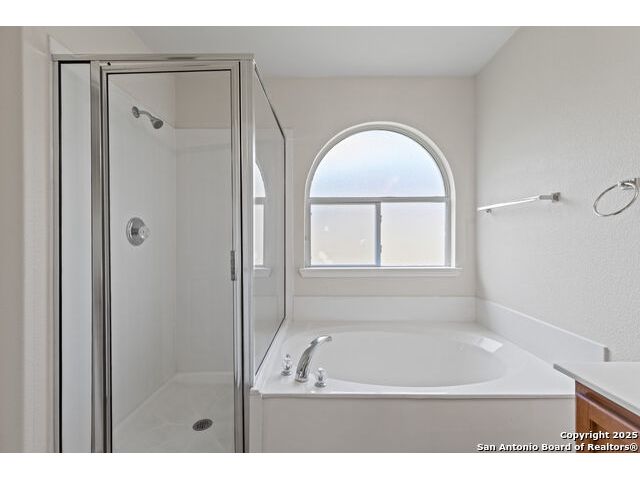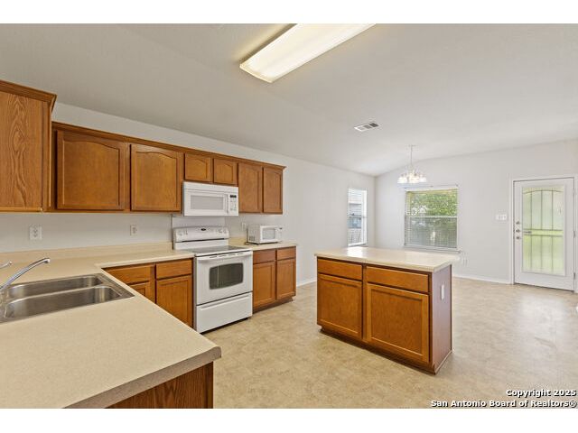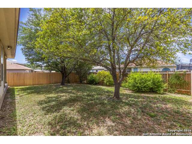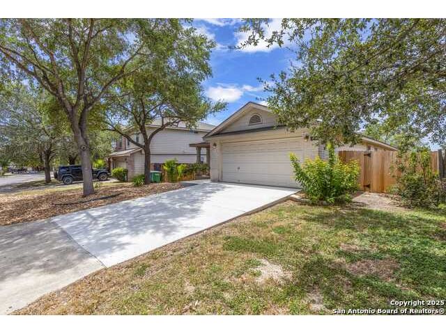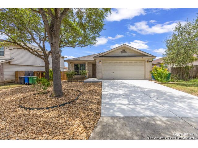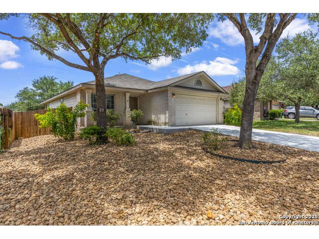 Discover this inviting home located just minutes from Randolph Air Force Base. Recent updates include fresh interior paint, a new privacy fence, and xeriscape landscaping for easy maintenance and curb appeal. Inside, the family room opens to the dining area, creating a spacious and connected living space. The oversized kitchen features an island, ample cabinet space, and flows into a bright breakfast nook - perfect for casual meals. The primary suite is tucked away at the rear of the home for added privacy and includes a separate shower, garden tub, and a generous walk-in closet. This home offers comfort, convenience, and thoughtful updates-schedule your showing today!