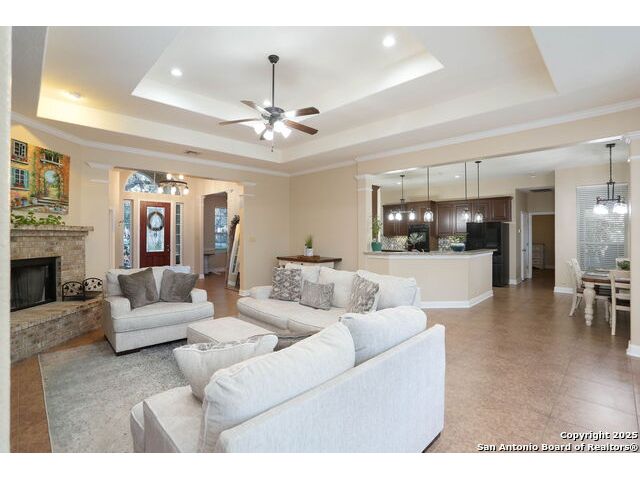 Set on 3.73 acres with mature trees and open space, 813 County Road 375 offers the perfect blend of privacy, comfort, and functionality. This well-maintained one-story home features an open floor plan with five bedrooms and three full bathrooms, providing generous space for both everyday living and entertaining. The expansive kitchen includes a large center island, ideal for meal prep and hosting, while the spacious living room with a fireplace adds warmth and charm. The large fifth bedroom can be used as a movie theater or multi-purpose room, offering added flexibility. Step outside to a beautifully landscaped front yard with exterior lighting, a private gated entrance, and a welcoming fire pit-perfect for evening gatherings. A large backyard patio offers additional outdoor living space, and a newly constructed chicken coop adds versatility for those interested in hobby farming. The primary suite features a walk-in closet and is conveniently located on the main level. Additional highlights include a four-car garage, numerous upgrades completed in the last three years, and thoughtful finishes throughout.