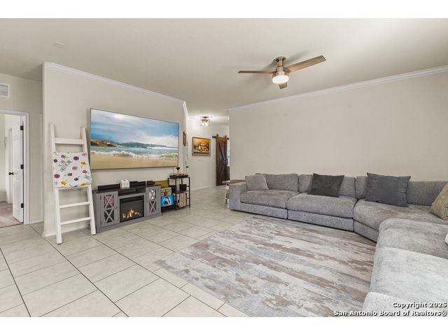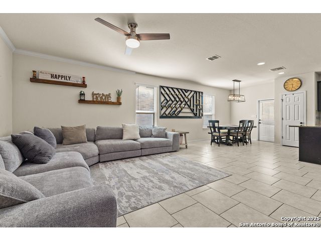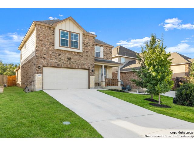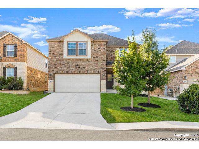 Welcome to this beautifully updated 4-bedroom, 2.5-bath home that backs up to a peaceful greenbelt-no rear neighbors! This thoughtfully designed layout features an open-concept living space with the owner's suite conveniently located on the first floor. The kitchen is equipped with stainless steel appliances, a spacious island, and an updated tile backsplash, perfect for both cooking and entertaining. A versatile flex room at the front of the home offers the ideal space for a home office, formal living area, or playroom. Upstairs, you'll find a generous second living area, three additional bedrooms, and a full bath. The home has been enhanced with updated lighting and bath fixtures. Enjoy your private backyard oasis with a covered patio overlooking the tranquil greenbelt. Don't miss the opportunity to make this well-maintained home yours-schedule your tour today!