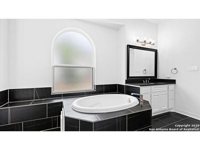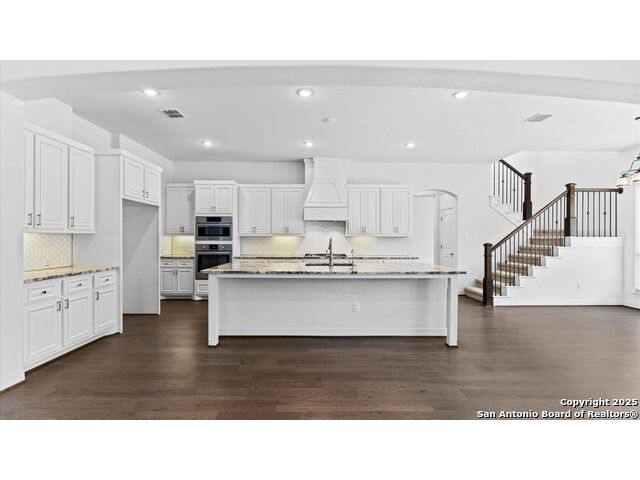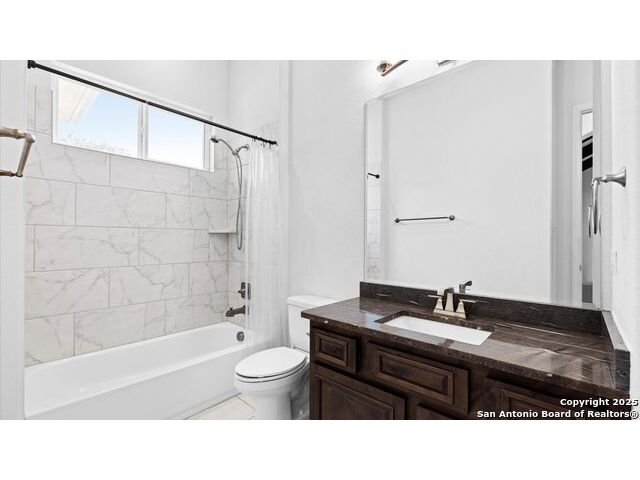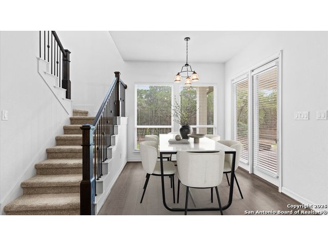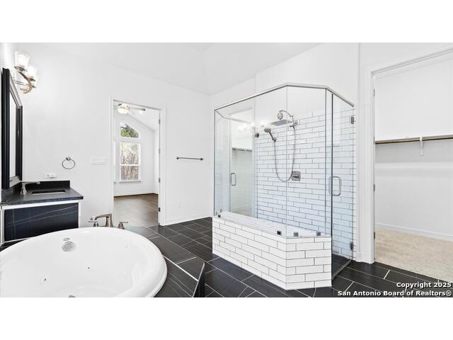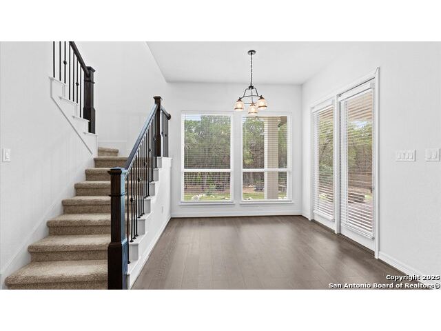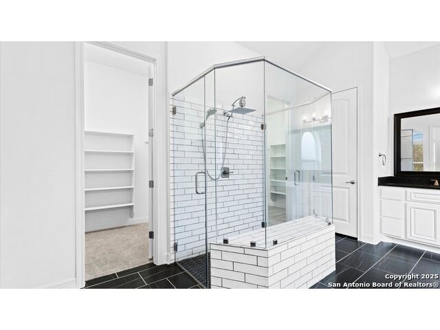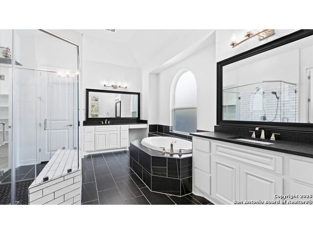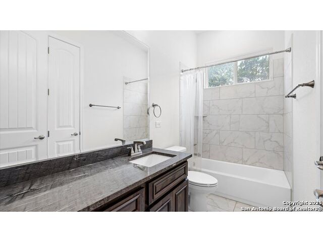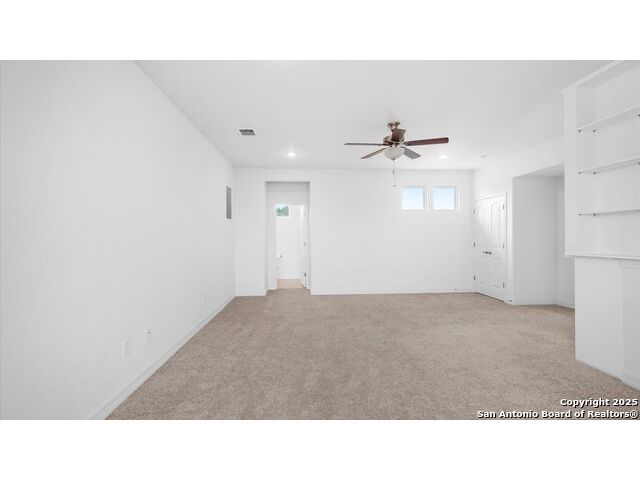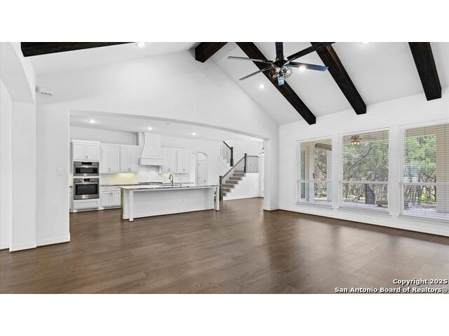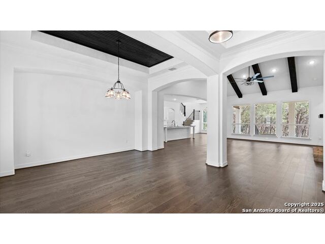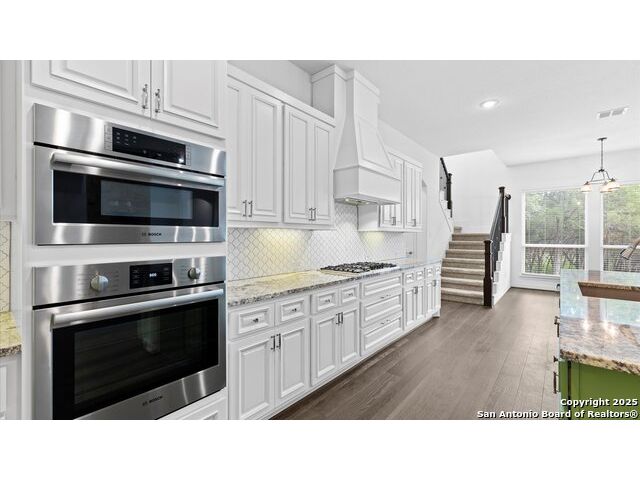 Nestled on nearly an acre and a half in the gated community of The Preserve at Mission Valley, this stunning Hill Country home offers the perfect balance of luxury, comfort, and timeless design. The two-story layout is thoughtfully planned, with the spacious primary suite and three additional bedrooms located on the main level, while a large upstairs family room features custom built-ins and a convenient half bath-ideal for a game room, media space, 5th bedroom or home office. At the heart of the home, an expansive open-concept living area features soaring beamed ceilings, a dramatic floor-to-ceiling rock gas fireplace, and oversized windows that flood the space with natural light and offer picturesque views of the backyard. The chef's kitchen is a dream, complete with a large center island, high-end appliances, custom cabinetry, and abundant counter space. Adjacent to the kitchen are both a formal dining room and a charming breakfast nook, providing multiple options for entertaining and everyday dining. The primary suite is a private retreat with vaulted, beamed ceilings, large windows, and a spa-inspired en-suite bath that includes a jetted garden tub, walk-in shower, dual vanities, and an impressive walk-in closet with built-ins. Two additional full guest baths serve the secondary bedrooms, offering comfort and convenience for family or guests. Step outside to enjoy a generous covered patio with ceiling fans and an additional uncovered area perfect for a hot tub. Among the mature trees in the backyard, you'll find a cozy firepit-perfect for entertaining under the stars. With plenty of room for a private pool and an oversized three-car garage, this home offers space to grow and enjoy. Located just minutes from New Braunfels, Gruene, and the scenic beauty of the Hill Country, this exceptional property combines privacy, elegance, and functionality in one of the area's most desirable communities.