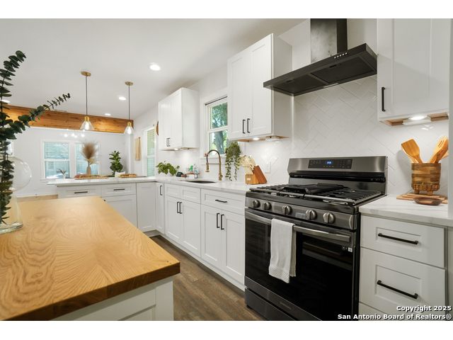 Welcome to 2205 Monterey St, a beautifully updated 3-bedroom, 2-bath home offering 1,220 square feet of comfortable living space in the heart of San Antonio's historic West Side. Originally built in 1945 and thoughtfully renovated in 2021, this charming home blends classic character with modern finishes, making it move-in ready for its next owners. Step inside to discover a bright and inviting layout featuring spacious bedrooms, stylish bathrooms, and updated flooring throughout. The kitchen boasts fresh cabinetry and sleek countertops, creating a perfect space for everyday living and entertaining. A cozy living area and in-unit washer and dryer connections add to the convenience, while the backyard's covered pergola and patio provide an ideal spot for outdoor gatherings. Located just 7 minutes from Downtown San Antonio, this home places you near the city's most iconic attractions, including the River Walk, The Alamo, and the bustling Pearl District. La Villita Historic Arts Village and Hemisfair Park are also just a short drive away, offering an array of cultural events, art galleries, and festivals year-round. For those commuting, easy access to I-10 and I-35 ensures a smooth drive to work or school. The property is also conveniently close to Our Lady of the Lake University, making it a great option for students or faculty members. Daily errands are a breeze with a nearby H-E-B supermarket just minutes away, and the neighborhood's local eateries and cafes offer plenty of dining options close to home. Whether you're a professional wanting proximity to downtown, a family looking for a cozy space, or someone seeking to enjoy San Antonio's vibrant community, 2205 Monterey St is a home that delivers charm, comfort, and convenience all in one. Ready to make this home yours? Schedule a showing today and experience all that this beautifully updated West Side gem has to offer.