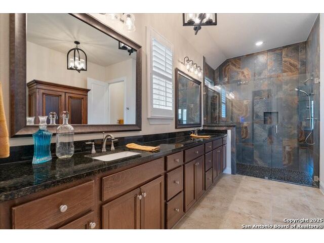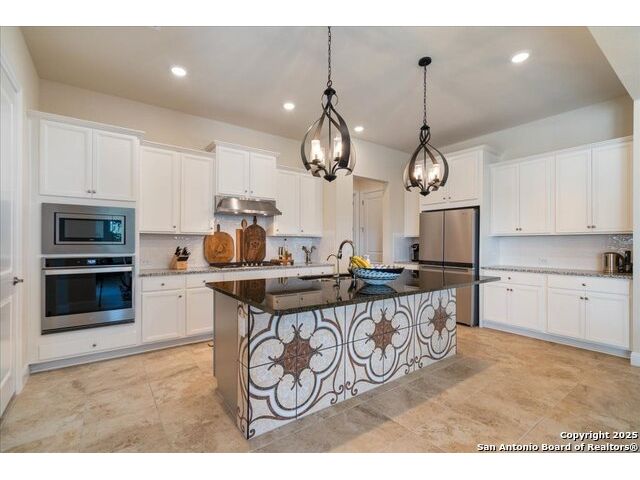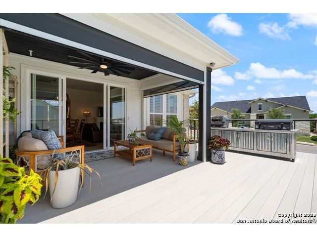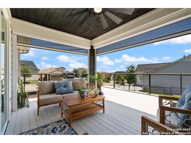 Welcome to this impeccably maintained residence, perfectly positioned on a rare premium corner lot at the top of the hill. From here, enjoy refreshing breezes and evening views of the city lights, all within the prestigious, gated Kissing Tree community. Designed with a seamless blend of luxury, comfort, and accessibility, the home features a discreet zero-threshold entry with an integrated wheelchair ramp that opens onto an expansive custom composite front deck. Outfitted with state-of-the-art MagnaTrack screens engineered to withstand high winds, this outdoor space is ideal for year-round enjoyment. A setup for custom mobile outdoor cooking-including a Blackstone pizza oven and griddle-makes it perfect for entertaining in true indoor-outdoor style. Inside, curated designer lighting, soaring 12-foot ceilings, and upgraded tile flooring set a refined, airy tone throughout. The gourmet kitchen is a chef's dream, anchored by an oversized granite island and elevated with thoughtful upgrades. The primary suite is a serene retreat, complete with a spa-inspired bath and a California-style walk-in closet offering exceptional storage and organization. This is not a builder-grade home-it is a masterfully designed, one-of-a-kind Kissing Tree retreat where style, functionality, and comfort converge. Motivated seller must move and considering all reasonable offers.
