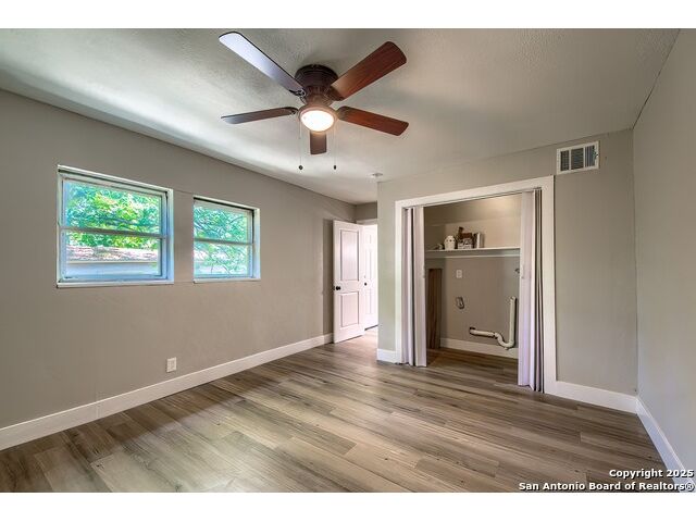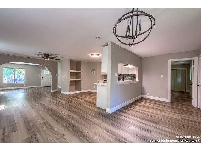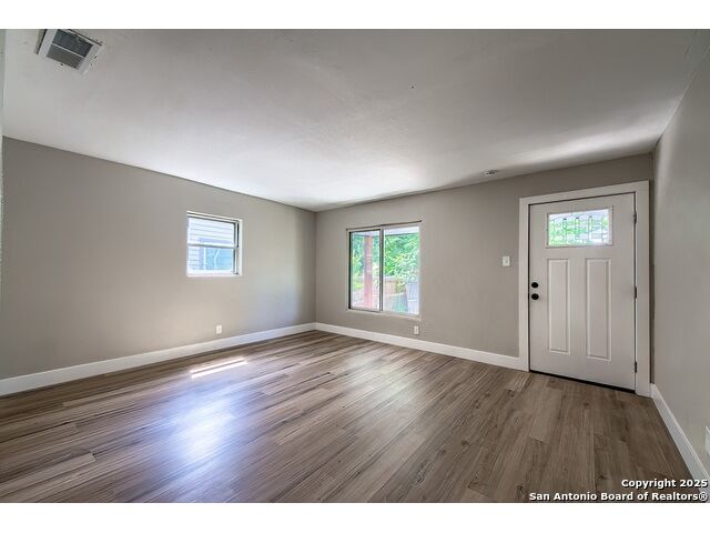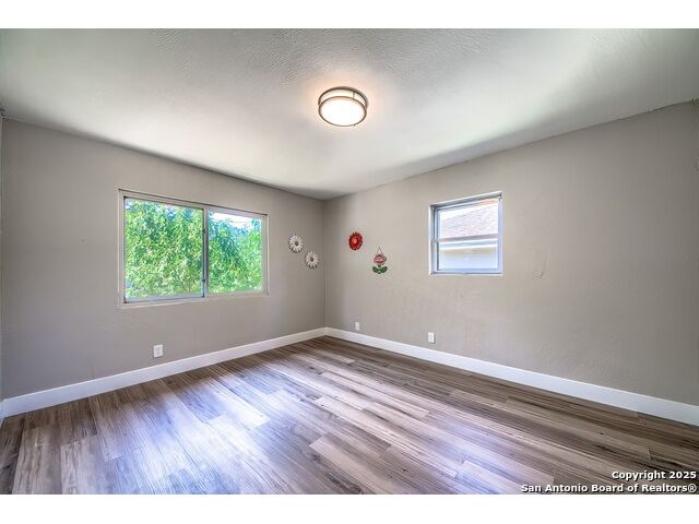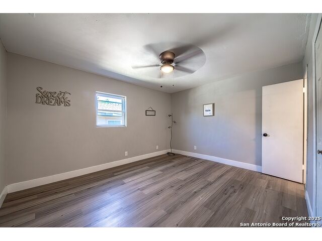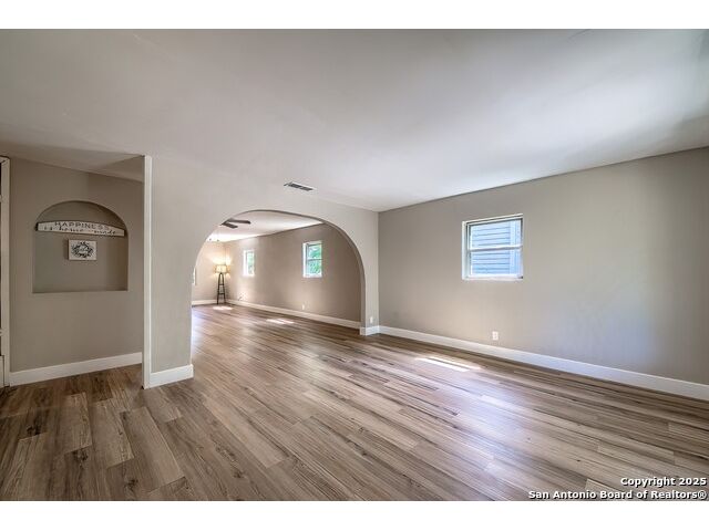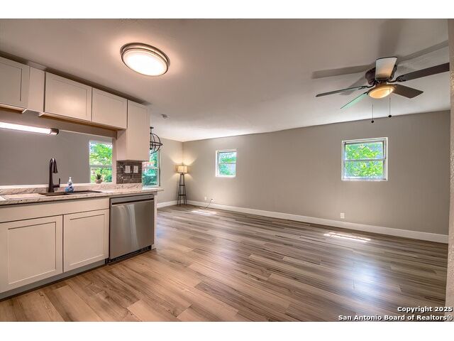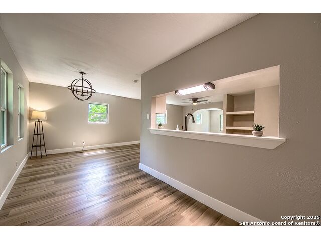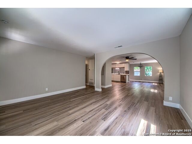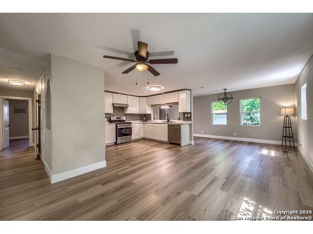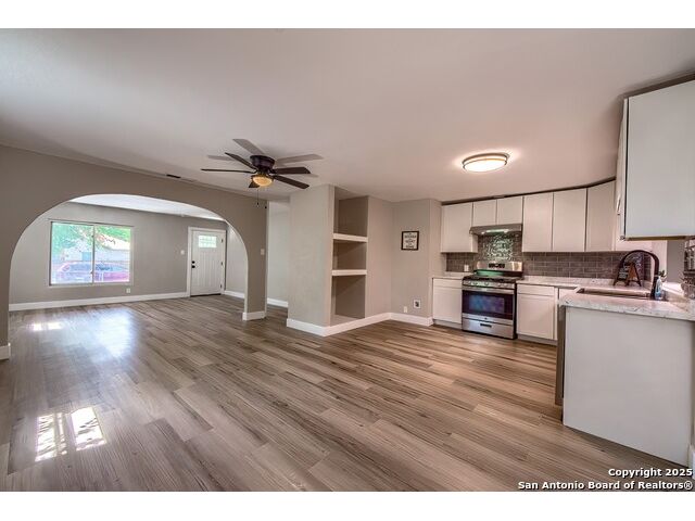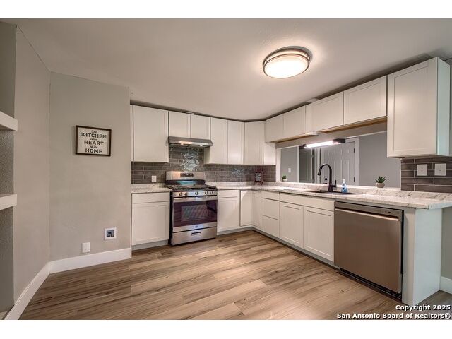 Stunning completely renovated 4-bedroom, 2-bathroom home that absolutely sparkles from top to bottom! This gorgeous 1,600 square foot gem sits on a spacious 6,098 square foot lot in the popular Harlandale area and has been meticulously updated throughout with no detail overlooked. The show-stopping kitchen features beautiful white cabinets that create a bright, airy atmosphere and serves as the heart of this amazing home, flowing seamlessly from family to dining room. The desirable open floor plan, perfect for both entertaining and family gatherings. Both bathrooms have been fully updated and look absolutely stunning with modern finishes throughout, including a sleek shower-only design in the primary bathroom and a convenient tub/shower combo in the secondary bath. Every inch of this home gleams with fresh updates including brand-new laminate flooring that flows beautifully throughout, creating a cohesive and elegant look that's both stunning and practical. Fresh interior paint throughout gives the entire home a crisp, modern feel that truly makes it shine. The durable Hardiboard exterior provides lasting beauty and low maintenance appeal. Enjoy complete privacy and security with the entire property enclosed by chain link fencing, plus a storage shed in the backyard for all your outdoor equipment and tools. This move-in ready masterpiece includes range/oven and washer, plus features central air and heat, washer/dryer connections. With its solid pier and beam foundation, composition roof, and large living area, formal dining room, this completely transformed property offers the perfect blend of style, comfort, and functionality. Don't miss this rare opportunity to own a home that has been renovated to perfection and truly sparkles in every room. Ready for new homeowners! Seller also willling to updated R38 installation in attic prior to closing.