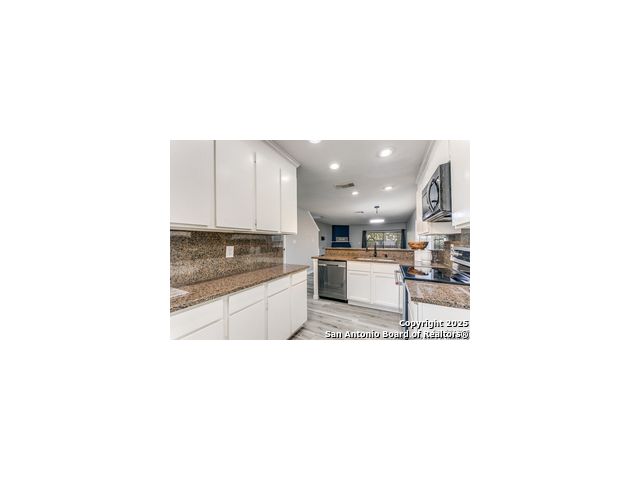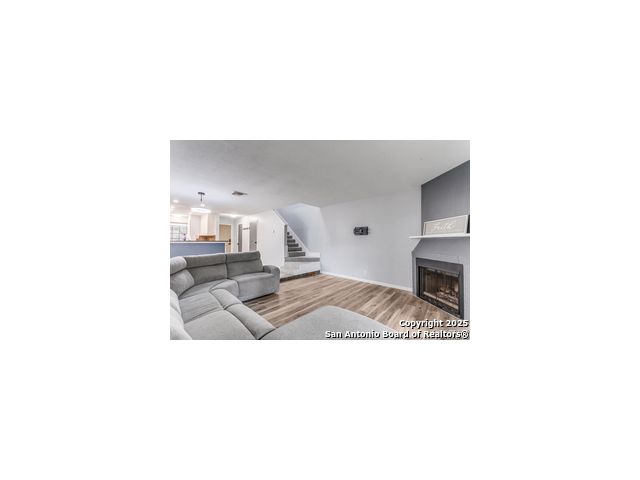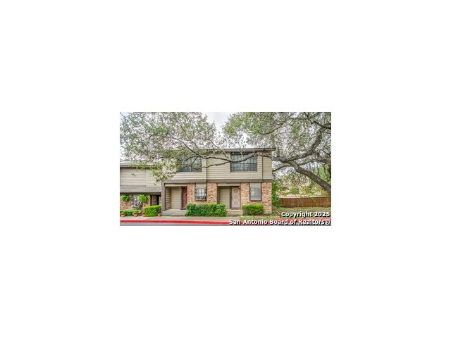 Motivated seller! Pilgrim mortgage is offering a temporary 2-1 rate buydown for qualifying buyers who use Pilgrim as their lender! Ask your agent for more details. This beautifully updated 1,099 sq ft end-unit townhouse-style condo in Edgecliff is a true hidden gem. This unit has only one shared wall with a shared green space featuring a huge mature oak tree on the other side. Recent upgrades include: HVAC replaced in 2024, stainless steel appliances, luxury vinyl plank flooring, upgraded carpet, new fixtures, and fresh neutral paint. The main level boasts a spacious kitchen + dining area, cozy living room with fireplace, and covered patio surrounded by lush tree cover, perfect for relaxing or entertaining. Upstairs, both bedrooms are generously sized and filled with natural light, enhanced by skylights and a private balcony off the primary suite. There is an assigned detached single-car carport and open parking in front of the unit. Be sure to swing by the community pool and explore all the amenities Edgecliff has to offer. Conveniently located near La Cantera, UTSA, USAA, the Medical Center, and more. This one won't last long! Some photos have been virtually staged to show some design options (not all curtains are real).