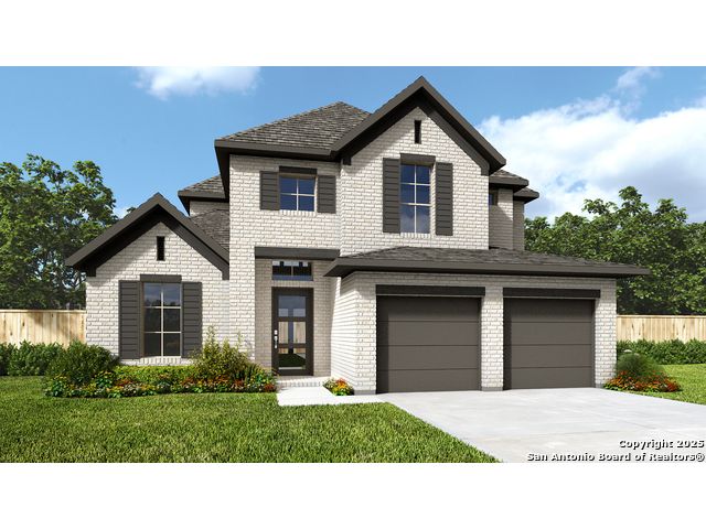 Front porch opens into a two-story entryway with a grand staircase. French doors enclose the private home office. The utility room is conveniently located off the main hallway. The family room boasts extended ceilings and a wall of windows. The kitchen has an island with built-in seating, 5-burner gas cooktop, and a walk-in pantry. The dining area is embraced by a corner wall of windows and allows entrance into the extended covered backyard patio. The primary bedroom boasts three large windows. French doors open into the primary bathroom which hosts dual vanities, a freestanding tub, glass enclosed shower, and two walk-in closets. Upstairs you are welcomed by a game room and secondary bedrooms. Completing the home is a guest suite tucked beyond the mud room which features a full bathroom. 5 zone sprinkler system and two-car garage.