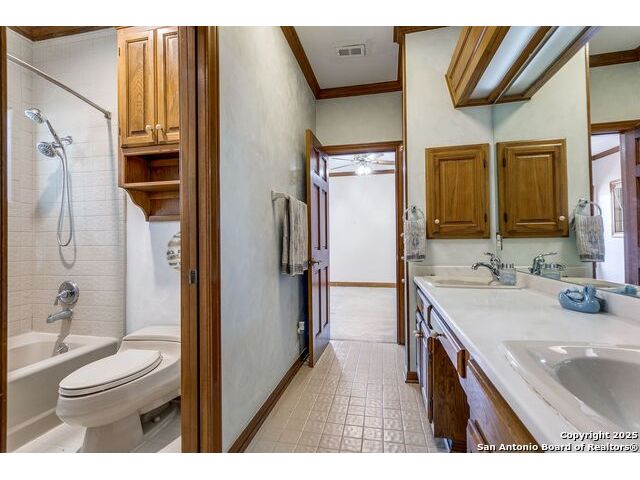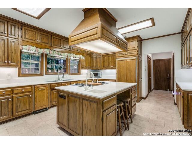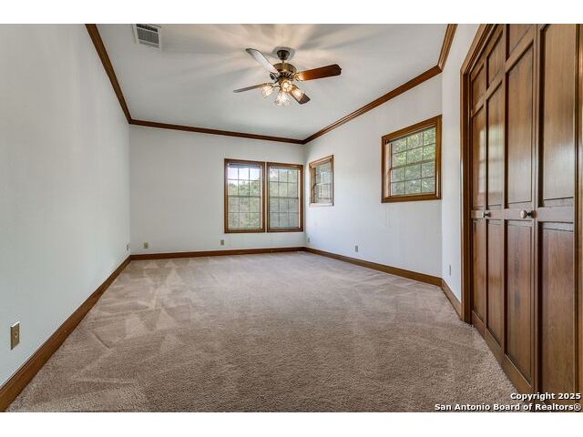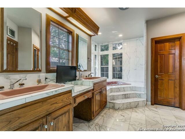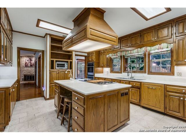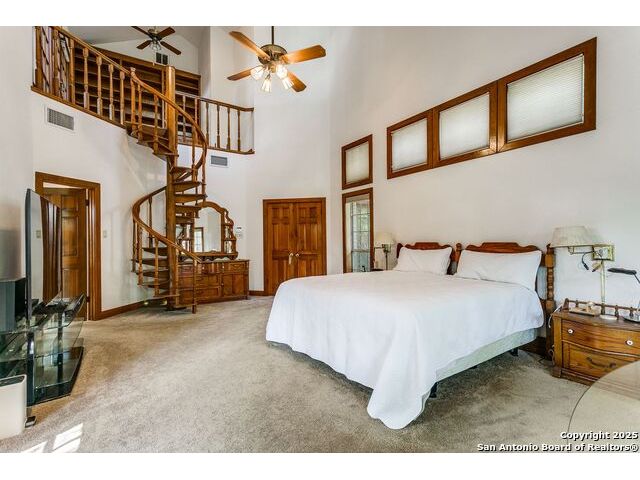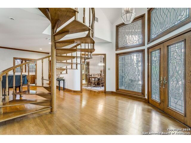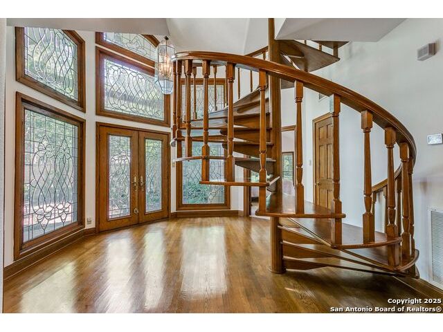 Custom-built one-owner home in coveted Oakwell Farms! Many unique architectural features, with a custom spiral staircase leading to upstairs bedrooms. Huge master bed suite is downstairs with a second spiral staircase leading to an upstairs library loft. Wood floors downstairs, and fire fireplace in living. There is a center island gourmet kitchen with large pantry. Community pool, clubhouse, tennis and pickleball courts, kids' playground, basketball court, and miles of jogging trails with a guard at the guard gate entrance. The sellers own the lot next door, which can be purchased for $305,000.