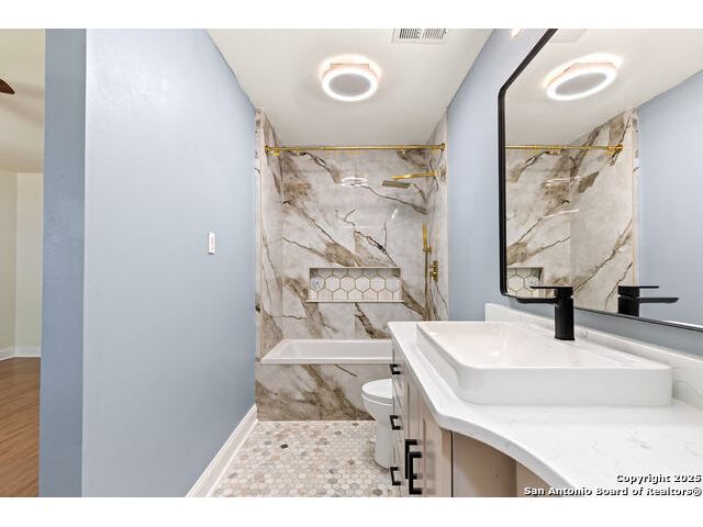 Charming and move-in ready, this beautifully updated 3-bedroom, 2-bath single-story home offers comfort, style, and convenience. Ideally located with easy access to 281, 410, and Wurzbach Parkway, and situated within the sought-after North East ISD, this home has seen numerous upgrades over the past five years. Recent improvements include a new roof, HVAC(2024), appliances (oven, cooktop, disposal, and refrigerator), double insert windows throughout, and a water softener! Enjoy low-maintenance living with new tile flooring, laminate wood in the bedrooms, fresh paint, ceiling fans, and stylish new light fixtures. A wall was removed to create a modern open-concept layout, with dated paneling replaced by drywall for a fresh, clean feel. The fully remodeled master bath suite is a true retreat. Outside, the newly sodded yard features a sprinkler system, crushed granite landscaping, and an extended driveway. This home is a rare find with thoughtful updates throughout-schedule your showing today!