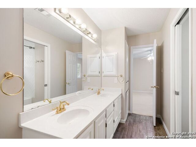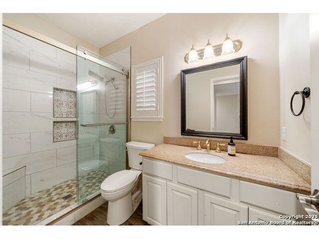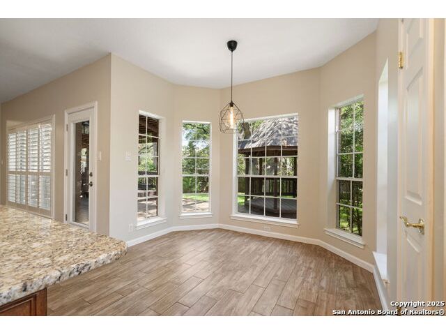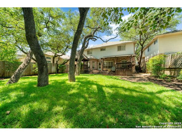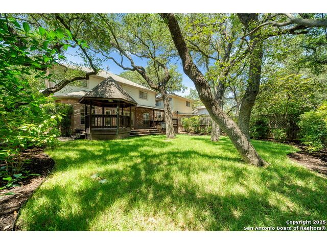 **OPEN HOUSE** Wednesday November 19th 1-4PM** Welcome to this beautifully maintained 4-bedroom, 3-bath home nestled on a quiet cul-de-sac in the highly desirable neighborhood of Oak Hollow Village. Enjoy the serene, park-like backyard complete with mature oak trees, lush landscaping, sprinkler system, a multi-level deck, and charming gazebo-ideal for relaxing or entertaining. Inside, you'll find an inviting open layout with soaring ceilings, large windows that flood the home with natural light, and elegant plantation shutters throughout. The well-appointed kitchen features granite countertops, a center island, breakfast nook, and abundant cabinet space. The family room includes custom built-ins, adding both style and functionality. Retreat to the spacious primary suite with vaulted ceilings and an en suite bathroom offering dual vanities, a soaking tub, and separate shower. Two of the secondary bedrooms share a convenient Jack-and-Jill bath, while a versatile downstairs flex space just off the second living area makes a perfect home office, playroom, or even a potential fifth bedroom. Gorgeous tile flooring runs throughout the main level, and the home's thoughtful layout provides ample space for both everyday living and entertaining. Located just a short walk to McAllister Park and within 5 minutes of shopping, dining, and top-rated schools-this home truly has it all!