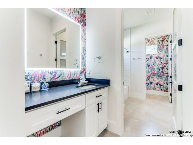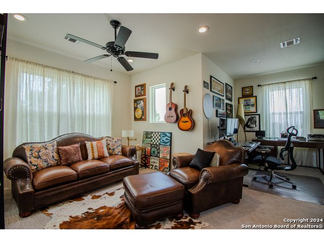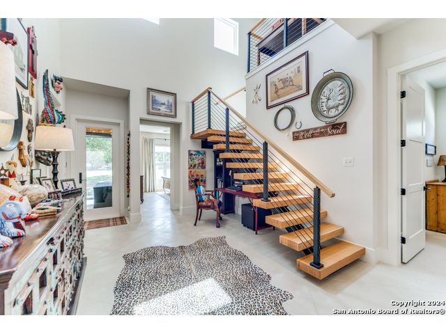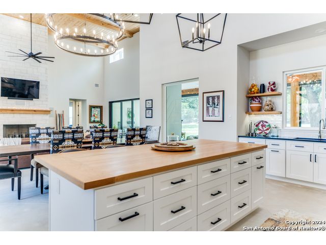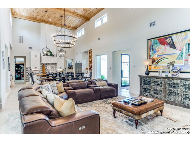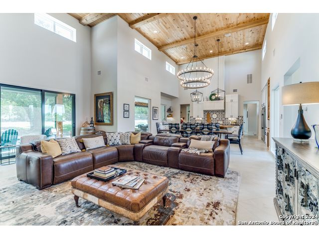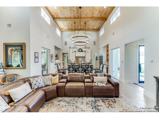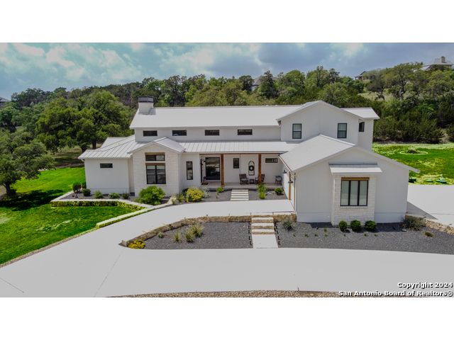 Welcome to 130 Saga Street in The Peninsula, the gated section of Mystic Shores! This 1.5 story, modern farmhouse, custom home sets beautifully on a 1.4 acre lot amongst several majestic oak trees surrounded by natural and professional landscape and a seemingly never-ending abundance of beautiful sunrises, serene sunsets, and dark skies . The heart of this home boasts 20' Southern Pine ceilings with 12" solid wood beams...a floor-to-ceiling, solid stone, gas/wood-burning fireplace...and, a wall of sliding/stacking patio doors between the living room and spacious back porch with motorized screens. The kitchen area has professional series appliances including a 6-burner/double oven range...a side-by-side refrigerator/freezer set...a wet bar with an undercounter ice maker...and, a walk-in pantry with butcher block counters and storage galore! The gallery is a welcoming conversational spot to display art and collectibles or for use as an enviable locker/drop zone. The loft area is an ideal space for use as an office, a den, art studio, crafting and more. Other features and energy-saving efficiencies include foam insulation...single-hung, tilt-sash windows...tankless, high-volume, recirculating water heaters...Nest thermostats...a Ring doorbell...remote-controlled window shades...an over-sized, 3-car garage with a drive-thru bay and side-mount door openers...a transferable structure warranty...and so much more!