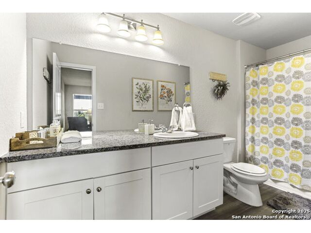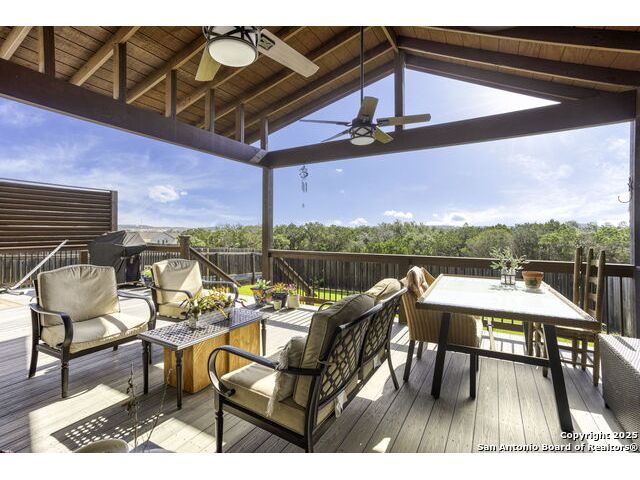 Located in the tranquil and desirable Hidden Trails community within Johnson Ranch, this impeccably maintained 3 bedroom, 2 bathroom home sits on a premium lot that backs up to a lush greenbelt. The stunning, expansive backyard deck consists of two walls on each side for ultimate privacy, and offers breathtaking views of the Hill Country. The deck is made from composite boards resistant to fading, staining, mold, and rot, and perfect for entertaining or unwinding after a busy day. Step inside to discover a spacious open-concept living area, modern kitchen featuring sleek countertops, stainless steel appliances, and gas cook top. The large built-in island flows effortlessly into the dining area and warm family room with views of your private, fully fenced backyard and green belt view. This Lennar home offers the Gannes floor plan featuring 2 full shower/tub combo bathrooms, 3 large bedrooms and a 2 car garage. Step outside to enjoy resort-style amenities, including: Splash pad for kids, Junior Olympic-sized lap pool, infinity pool and 24/7 gym, fitness center, community center and clubhouse. Additional amenities include Two playgrounds, one featuring a zip line, biking and walking trails, a dog-friendly park, BBQ areas, Basketball courts, and a Catch-and-release fishing pond.