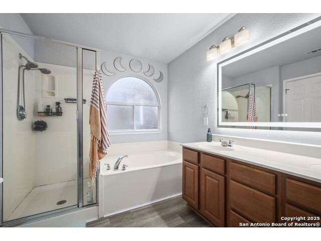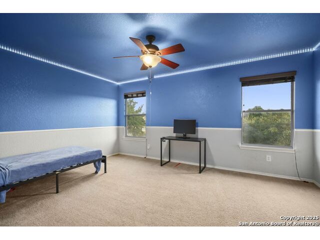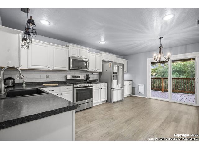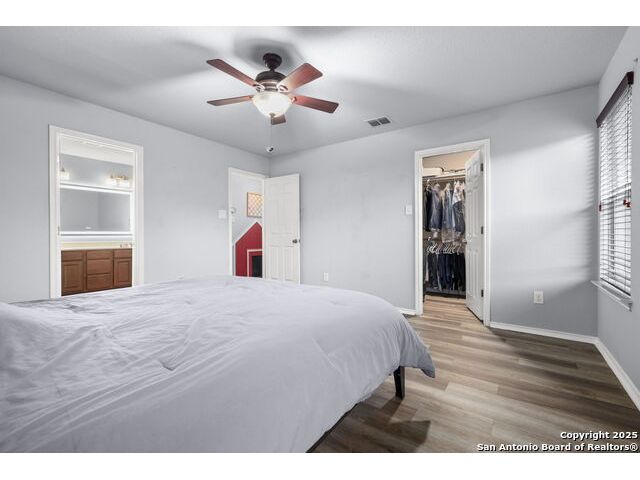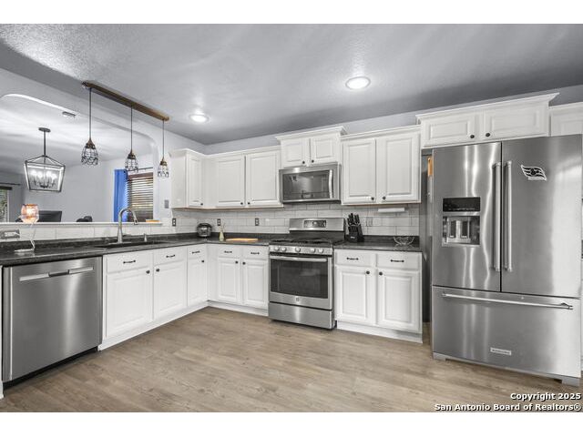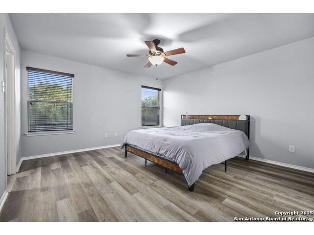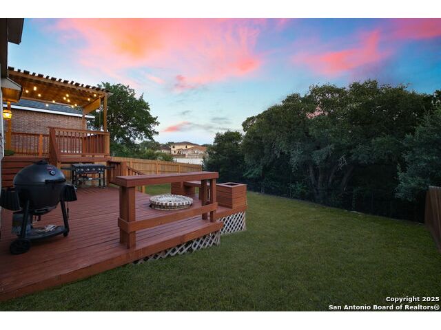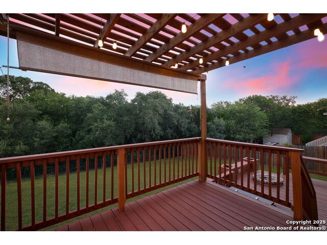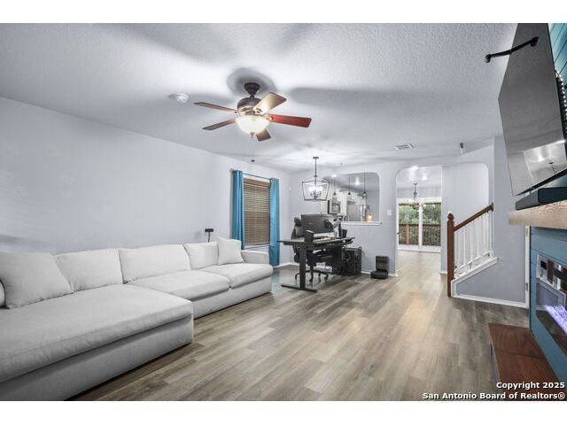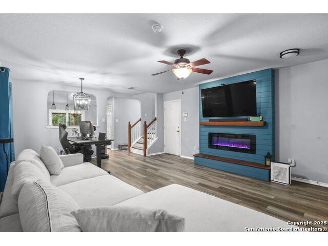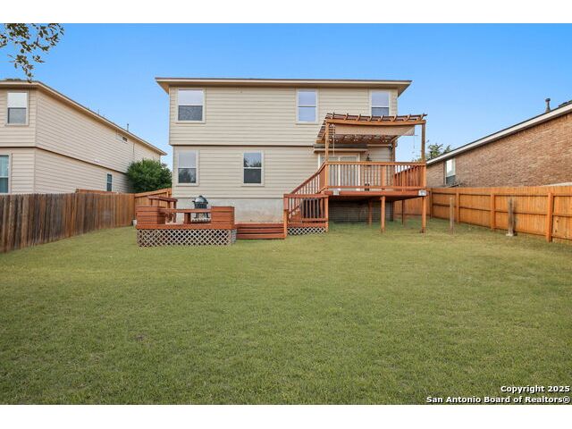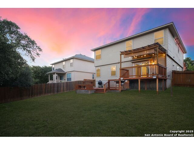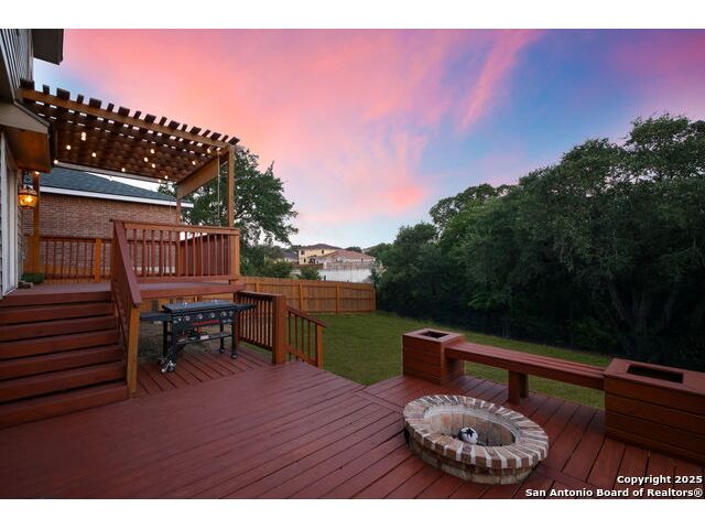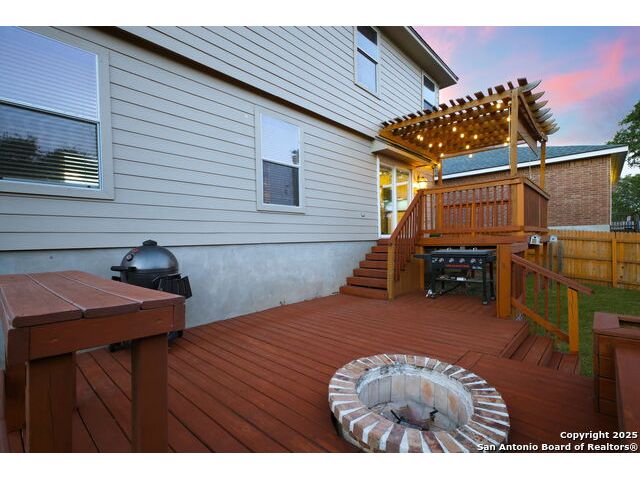 243 Cardinal Song combines spacious living with standout features designed for comfort and style. The centerpiece of the home is a custom electric fireplace set against a bold shiplap accent wall-both modern and inviting, perfect for cozy nights or entertaining guests. The main level flows seamlessly with laminate flooring and an open-concept layout connecting the living, dining, and kitchen areas. Upstairs, all bedrooms are generously sized and feature walk-in closets-ideal for families or anyone needing extra space. The primary suite offers a peaceful retreat with a large layout, dual vanities, and views of the private backyard. Out back, enjoy the serenity of a greenbelt lot with no rear neighbors, a spacious deck with pergola lighting, built-in seating, and a brick fire pit-an ideal setup for gatherings or quiet evenings under the stars. Located near top-rated schools, shopping, and major highways, this home is move-in ready with character and upgrades throughout.