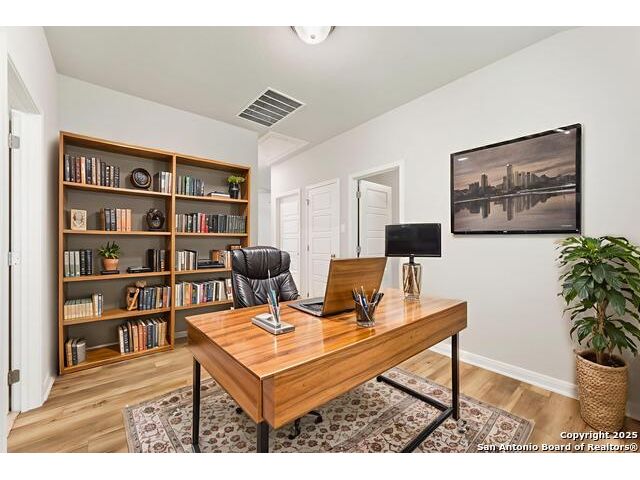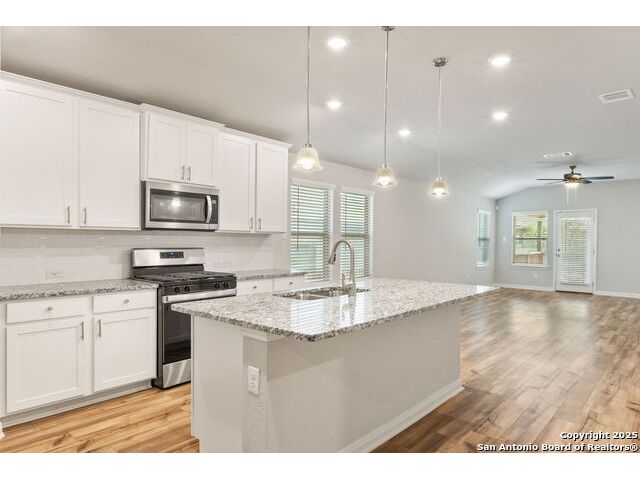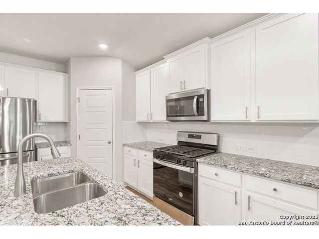 If you're looking for a NEARLY BRAND NEW home without having to wait for it to be built, look no further! This stunning Meritage home single story has all the creature comforts you've looking for in a floor plan that just makes sense. From the wide open great room (kitchen, dining area, and living room all flow into each other) to the comfortable and accommodating guest suite (separate from secondary & primary bedrooms), this house was thoughtfully designed and every square foot is used with purpose! The secondary bedrooms have their own living space, perfect for a playroom, workout area, or craft space away from the main living area of the home. The kitchen is extremely well appointed with gas cooking, beautiful granite counters, stunning white cabinetry, and plenty of storage space. The primary suite (split from secondary bedrooms) is spacious and features a luxurious full bath ensuite with a generous walk in closet. Step out onto the covered patio and enjoy the neatly manicured (and fully fenced) backyard before you rush off to make your offer on this like-new home! Schedule your showing today!