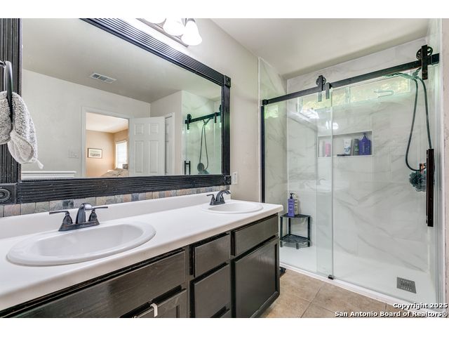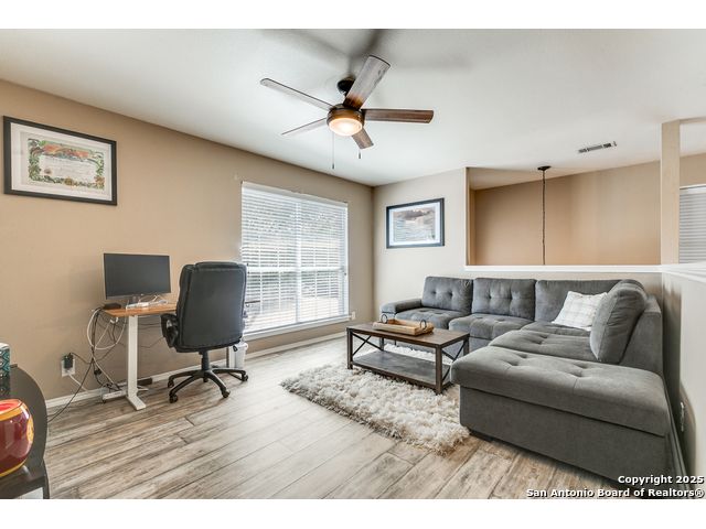 Welcome to this stunning home located in the desirable northwest side of San Antonio, just minutes from Bandera Pointe shopping center, restaurants, and major highways. Situated in a peaceful cul-de-sac, this home offers the perfect blend of comfort, convenience, and style. Step inside to discover a spacious and inviting open floorplan featuring vaulted ceilings in the entryway, a formal Dining room, and a Living room with easy access to the back patio. The heart of the home is the Kitchen, which boasts gorgeous granite countertops and plenty of cabinet space. Whether you're preparing a family meal or hosting guests, this Kitchen is as functional as it is beautiful. The first floor is finished with easy-to-maintain tile, offering both durability and style throughout the living spaces. Upstairs, the versatile loft area offers a second living space, perfect for a home office, game room, or media room. The Primary bedroom is a peaceful retreat, featuring a walk-in closet and a luxurious en-suite bath with double vanity sinks. The second floor is complemented by warm wood laminate flooring, enhancing the home's inviting atmosphere. Step outside to a serene backyard with mature trees and a covered patio, perfect for outdoor dining or relaxing. The fully privacy-fenced yard offers a quiet and private retreat, with no neighbors sharing a back fence (Greenbelt), ensuring a peaceful and unobstructed outdoor experience. Don't miss out on the opportunity to make this beautiful home yours - schedule a showing today!