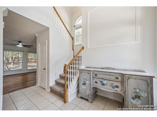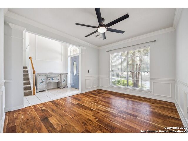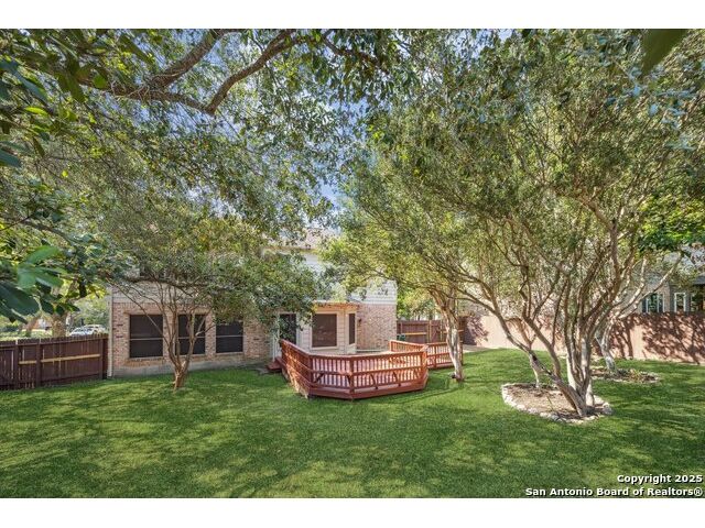 Smashing! Jewel Box of a home located in a charming and oh so convenient right off Schertz Parkway in between 1-10, 78, and I-35. Everything you could want, or need is minutes away! This great neighborhood is surrounded by parks and jogging trails. A beautiful park for the children to play or Fido to walk in is right behind! Pride of ownership and a huge sense of style is quite evident as soon as you drive up! A great floorplan awaits! Large 2-story entry, gorgeous hardwoods both in the living and formal dining. Pinterest worthy crown molding, wainscotting, and picture frame trim molding Turn the corner and visit a family room, kitchen and breakfast area you have never seen before! All open to each other with a two-sided fireplace into the family room. Each room views the great deck and heavily wooded back yard. The master is big spacious and light. The primary bath is everything you would expect. Big vanities, mirrors, garden tub, separate shower, walk in closet, separate water closet. The study could double as a fourth bedroom or upstairs den. It has great windows and prime for zoom meetings! The secondary bedrooms are large and have great closets. This home is turnkey and looks and feels like new! Tucked on a small hill, framed by old growth trees, all on a quiet cul-de-sac. Perfect home for someone who commutes to work and wants to rest and relax on weekends! San Antonio is 10 minutes away as is the Air Force Base.