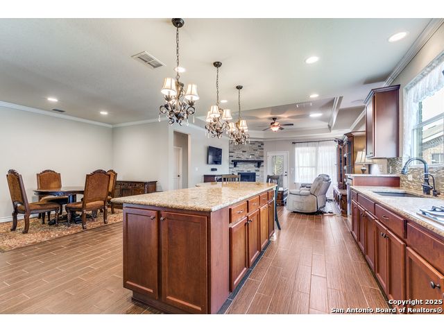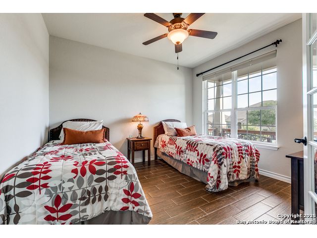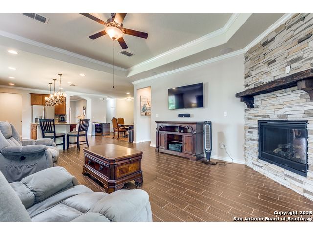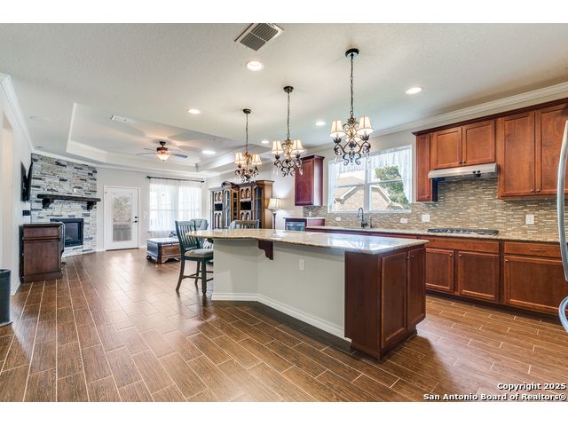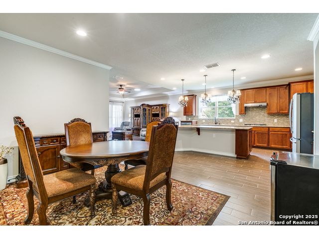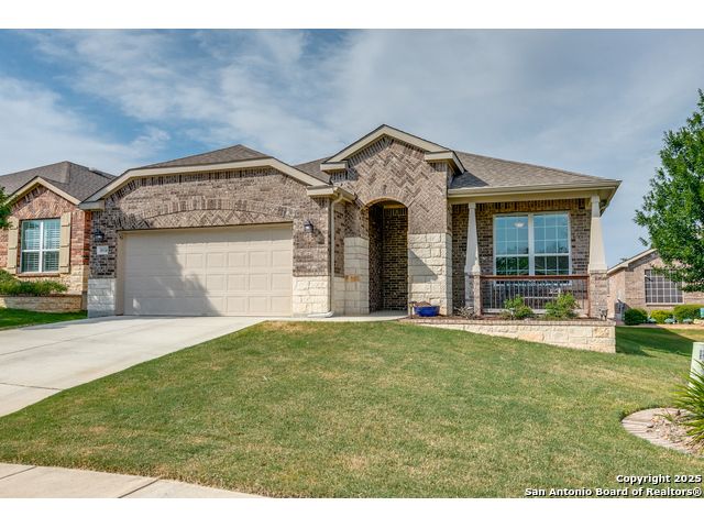 Welcome to 3614 Denison Dam, 55+ community where modern comfort meets timeless style. This beautifully designed home features an open-concept layout with a bright gathering room flowing into a spacious kitchen and cafe-style dining area. The kitchen boasts modern cabinetry, a large island with bar seating, stainless steel appliances, and abundant counter space. The master suite offers a luxurious ensuite with double vanities, walk-in shower, and ample storage, while additional bedrooms and a flex room provide space for guests, a home office, or hobbies. Don't miss the second floor-accessible only from the garage-ideal for a private office, hobby space, or extra storage. The garage also includes built-in storage and HVAC access conveniently located next to the garage entry door leading into the house. A large backyard offers the perfect setting for relaxation, entertaining, or creating your own outdoor oasis.