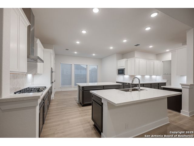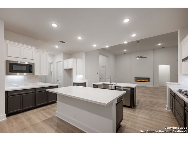 Move in Ready! Step through the 8ft entry door into the grand foyer. This leads you into the very open family room and kitchen where there are double islands set aside from a dining room, allowing plenty of space for entertaining and feasting. The oversized sliding panel doors will take you from the family room to the oversized covered back patio where you can sit around the gas fireplace. The 3-car tandem garage will provide plenty of parking and storage space, so you'll always be able to upgrade your vehicles to something really fun!