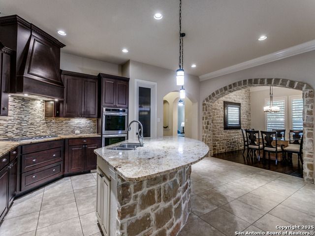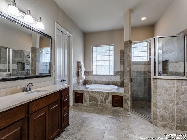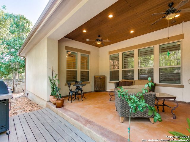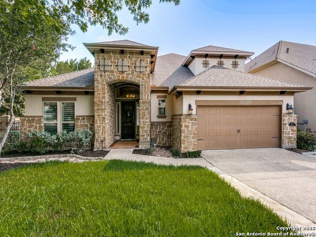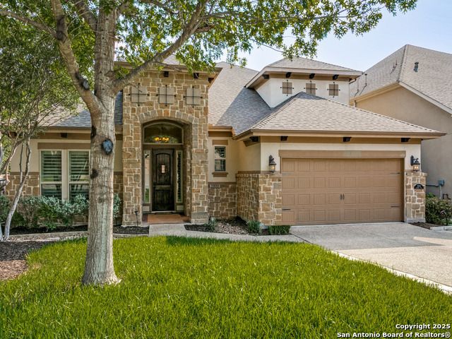 Recent price reduction, motivated Seller. Located in the Estates of Alon, this splendid sanctuary includes 3BR/3.2BA within 3,394 sq ft of thoughtfully designed living space on a .16-acre corner lot. All bedrooms are on the main level, each with its own en-suite bath, two powder rooms. The home features a dedicated study, formal dining, a culinary enthusiast's kitchen with gas cooktop, double ovens, wine fridge, walk-in pantry, and custom cabinetry. Great for entertaining. Spoil yourself in the primary suite which includes a flex space, dual vanities, soaking tub, large walk-in shower, and private water closet. Special ceiling treatments elevate the living room, dining, study, and primary bedroom, adding character and depth. Vacation at home upstairs in the spacious game room with wet bar, watch the latest movies in the media room, perfect for hosting friends and family. Additional highlights include stone accents, plantation shutters, 8ft interior doors, loads of natural light and a covered patio that serves as a third living space. Entertainers dream home. Two car garage is air conditioned. Private pathway provides direct access to Alon Town Centre. Incredible location, near Medical Center and San Antonio airport. Seller will consider all reasonable offers.