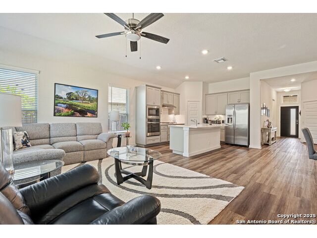 ***OPEN HOUSE SUNDAY 11/16 12-3P *** Welcome to this stunning gently lived-in home in New Braunfels located within walking distance of schools and a short drive to restaurants, shopping and I-35. This one story home features an abundance of natural light throughout, open floor plan and a split primary bedroom. The island kitchen features a built in oven, gas cooktop and a large walk-in pantry. New owners will fall in love with the extended tiled patio and meticulously maintained backyard that features professionally landscaped flowerbeds. Neighborhood amenities include a playground, basketball court, pickleball court, and walking trail.