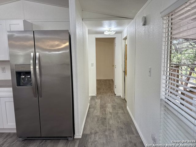 Renovated Hill Country home on 3 lots backing to a greenbelt with nearly three quarters of an acre of privacy. Located in the Lake Medina Shores community, this 3 bedroom, 2 bath Skyline manufactured home offers space, seclusion, and move in ready updates in a quiet Hill Country setting. Situated on three combined lots totaling 0.705 acres, the property backs to a greenbelt providing extra privacy and natural views. The home was built in 1996 and fully renovated in 2024. The 1,280 square foot interior features new laminate flooring throughout, updated kitchen and bathroom cabinetry, and stainless Frigidaire appliances including a gas range. The living room includes a wood burning fireplace and the home offers a dedicated laundry room and new window blinds throughout. The primary suite includes a spacious bathroom with dual vanities and a tub and shower combo. The secondary bathroom also includes a full tub and shower. Major updates have already been completed, including a new dimensional shingle roof installed in 2023 with TechShield and StormGuard underlayment, HardiePlank soffits, and an American Standard HVAC system installed in 2023. Exterior features include a semi circle driveway, partially fenced yard, metal storage shed, whole house water filtration system, and a handicap accessible front entry ramp. With nearly three quarters of an acre, greenbelt backing, and extensive recent updates, this property offers a rare opportunity for a turnkey Hill Country home. Schedule your showing today.