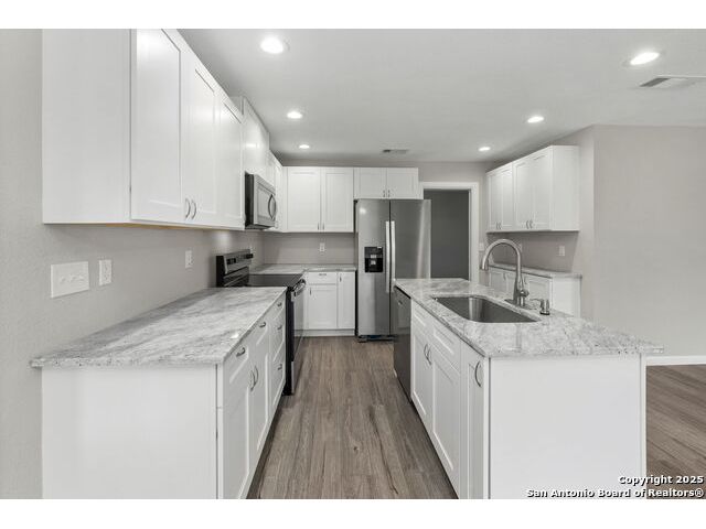 Fully Renovated 3-Bedroom Home on Corner Lot with Garage Workshop Welcome to 5534 Castle Way - a move-in ready 3-bedroom, 2-bath home situated on a desirable corner lot. This fully rehabbed property features an open floor plan with brand-new flooring, fresh interior and exterior paint, updated lighting, and modern finishes throughout. The kitchen has been completely updated with quartz countertops, stainless steel appliances, and custom cabinetry. Both bathrooms have been renovated with contemporary tile and stylish fixtures. The spacious 2-car garage includes a dedicated workshop area - ideal for projects, storage, or additional workspace.Conveniently located near Loop 410, shopping, and schools, this home offers comfort, function, and style all in one.Schedule your showing today!