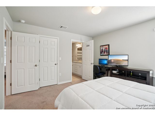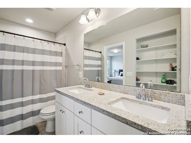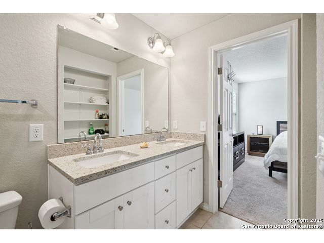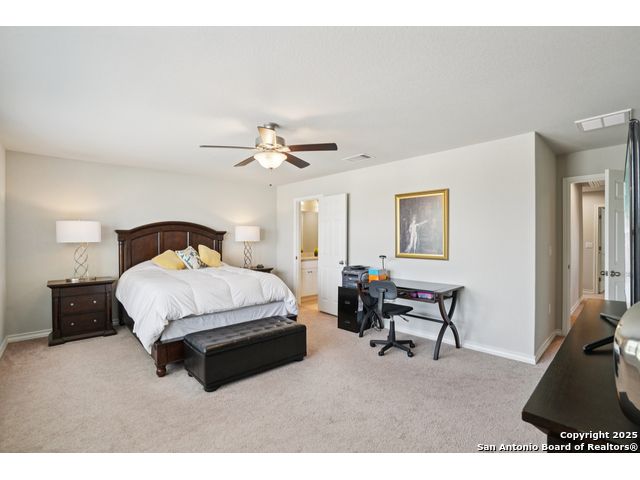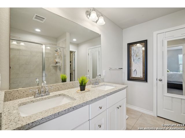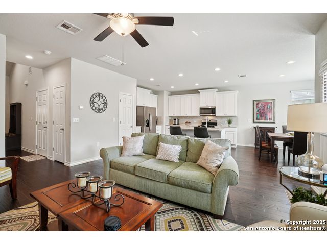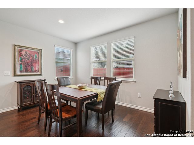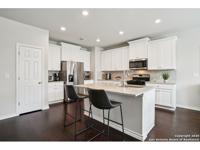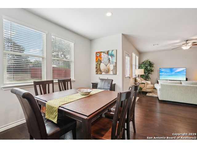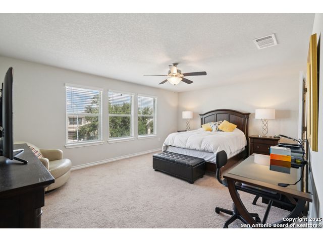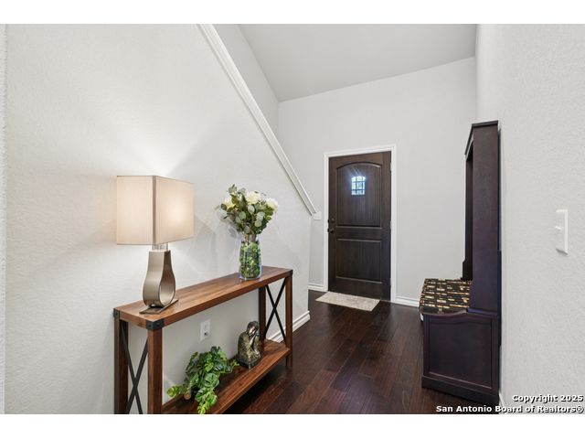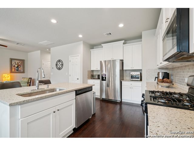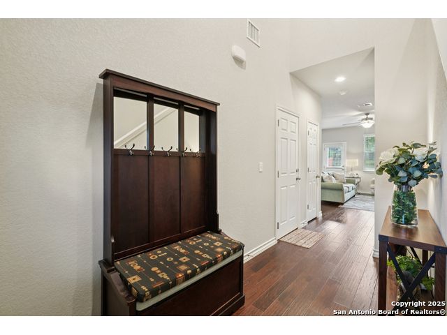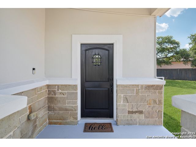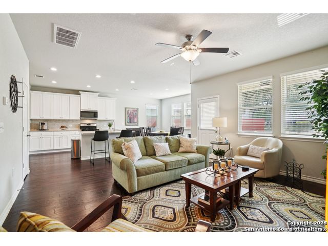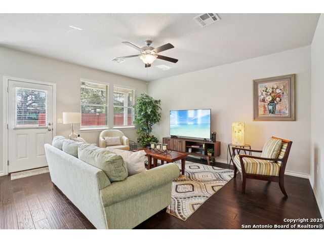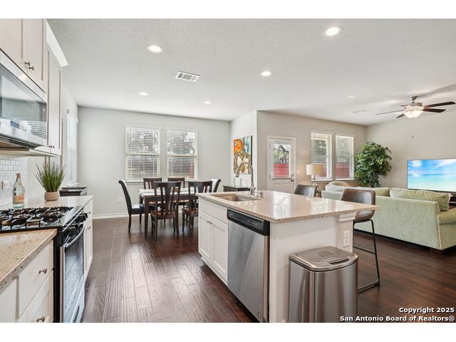 Welcome to this stunning home located in the sought-after gated community of Winding Oaks, within the top-rated NEISD school district! Perfectly designed for comfortable living and effortless entertaining, this home features a bright, open-concept layout where the spacious kitchen flows seamlessly into the family room. Enjoy durable and stylish wood-look tile flooring throughout the first floor. The chef's kitchen is a showstopper with gas cooking, white cabinetry, gray quartz countertops, stainless steel appliances, and a large breakfast bar-ideal for casual dining or hosting guests. Upstairs, you'll find all three generously sized bedrooms, including a versatile flex space perfect for a home office, reading nook, or workout area. The luxurious primary suite offers a spa-like experience with a large walk-in shower, dual quartz vanities, and a walk-in closet. Step outside to a private backyard with no rear neighbors and added privacy on both sides, creating a serene outdoor retreat. Community amenities include a gated entrance, sparkling pool, park, and playground. Centrally located with quick access to Loop 1604, Hwy 281, and I-35. Minutes from Fort Sam Houston, BAMC, Randolph AFB, shopping, dining, and entertainment.