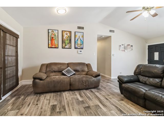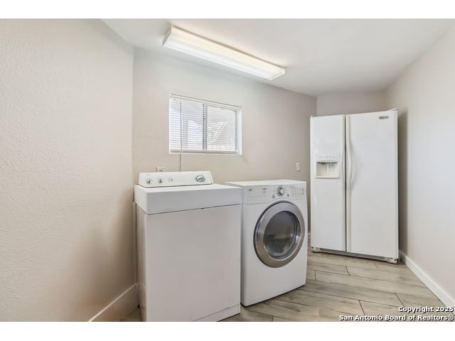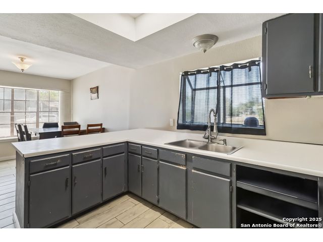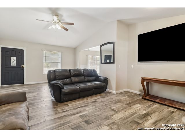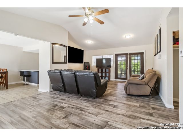This charming home boasts high ceilings and an open-concept layout that adds character and spaciousness throughout. The vinyl flooring beautifully complements the entire interior, enhancing its modern feel. The living area opens seamlessly into the kitchen and dining space, making it perfect for entertaining. French doors lead to a welcoming outdoor patio-ideal for relaxing or hosting gatherings. The large laundry room offers ample space to add a storage freezer or extra refrigerator, providing practical functionality for everyday living. Situated on a quiet cul-de-sac, the property offers privacy and security with fencing and plenty of room for outdoor activities. "Conveniently located just minutes from major highways, this area offers easy access to Pearsall Park and Millers Pond-two vibrant community parks with daily family-friendly activities. The neighborhood also boasts a variety of local eateries, perfect for dining and socializing." Home Warranty Included.