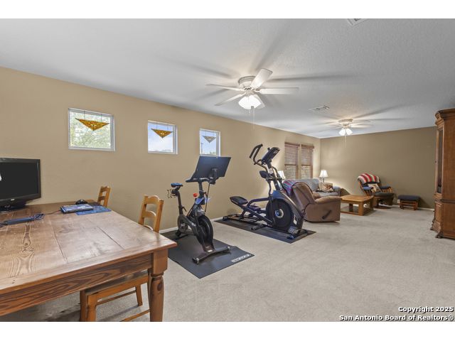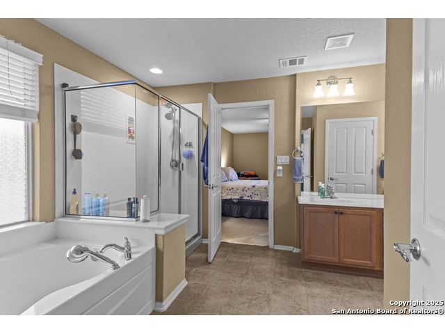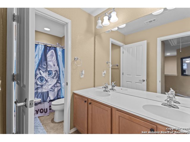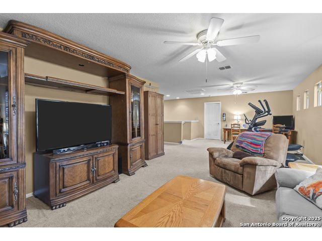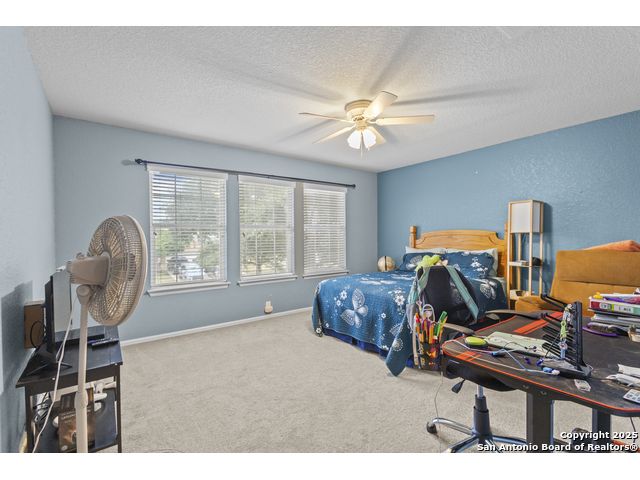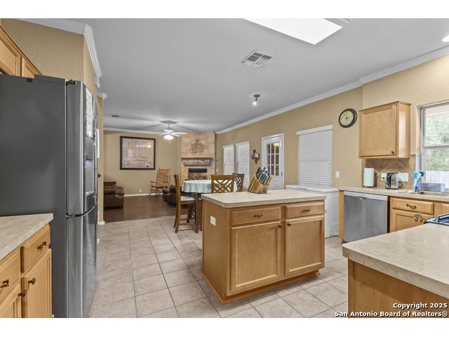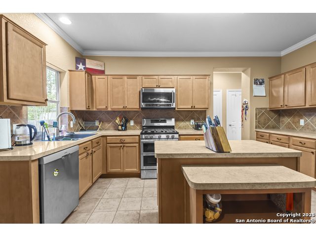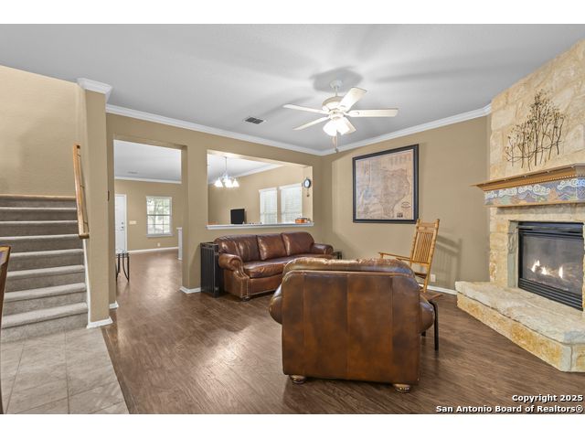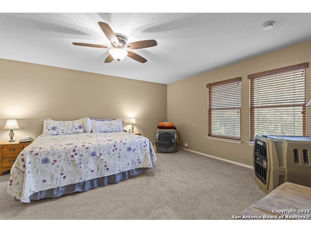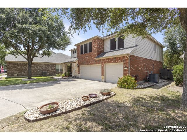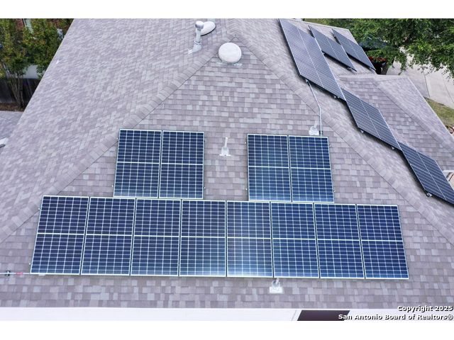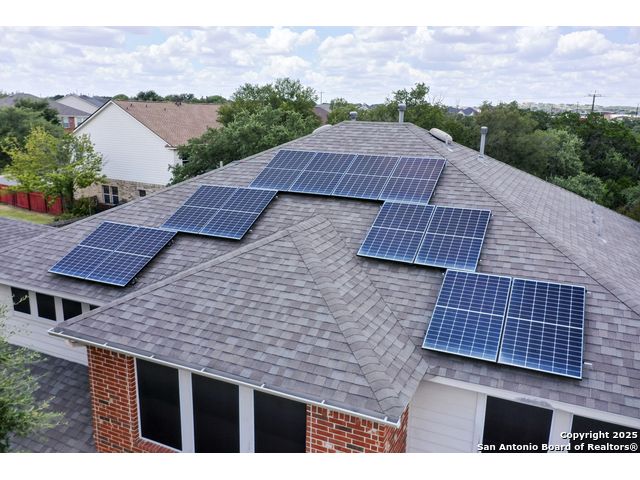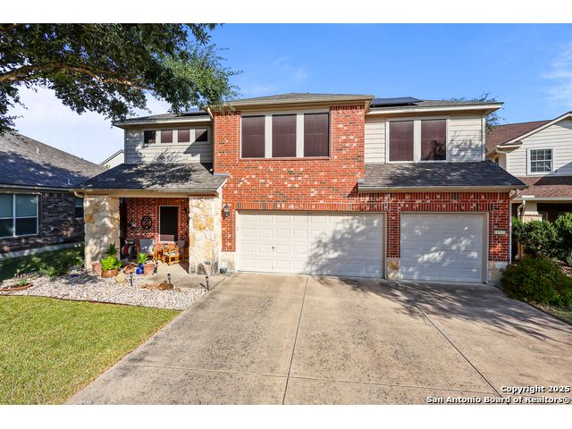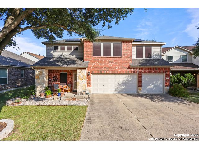 Welcome to 11511 Elijah Stapp, a stunning 4-bedroom, 2.5-bathroom home nestled in a quiet cul-de-sac in San Antonio's desirable 78253. Offering 3,120 sq ft of living space, paid-off solar panels, and a 2024 complete overhaul of the HVAC system with a $37,000 high efficiency unit, this home offers not only style and space but long-term energy savings and eco-conscious living. Enjoy a thoughtfully designed layout featuring connected living and dining areas, a separate living room with a cozy fireplace, and a chef's kitchen complete with a large island, stainless steel appliances, and ample cabinet and counter space. The oversized primary suite boasts a walk-in closet, double vanity, and a separate shower and tub for ultimate relaxation. Upstairs, you'll find a huge loft perfect for a playroom, home office, or second living space. The exterior features a covered front porch, a private covered back patio, and a 3-car garage. The property backs up to a tranquil greenbelt, offering privacy with no rear neighbors. With paid-in-full solar panels, this home provides peace of mind, reduced electric bills, and a smart investment for the future, all in a prime San Antonio location near top schools, shopping, and major commuter routes.