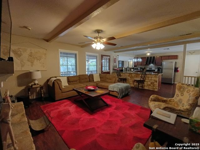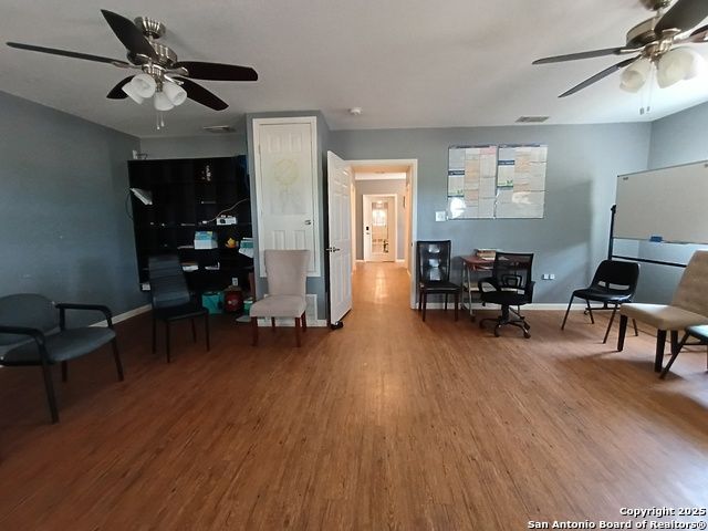 Nestled on a sprawling 6.27-acre estate, 1401 Dezarae Lot 4 in San Antonio, TX, offers a rare blend of residential living and versatile commercial potential. This exceptional property features a recently remodeled 2,004-square-foot ranch-style home, two modern office buildings, and ample land for privacy or future development. The beautifully updated 2,004-square-foot ranch-style home boasts three spacious bedrooms and three well-appointed bathrooms, perfect for comfortable living. The open-concept design includes two generous living rooms, ideal for entertaining or relaxation, and a cozy dining area. The modern kitchen flows seamlessly into the living spaces, creating a warm and inviting atmosphere. The primary suite features a spacious ensuite bath. A dedicated laundry room and a garage converted into a game room add functionality and charm. Outdoors, enjoy a private oasis with a sparkling pool, relaxing jacuzzi, and a sustainable water well. The home can be purchased fully furnished, ready for immediate move-in. The first office building is a versatile 1,200-square-foot structure, built in 2019, and features four offices, two spacious meeting rooms, one interior half bath, and one exterior half bath. With one central HVAC unit, this building offers flexibility for professional use or conversion back to a barn/workshop, catering to a variety of business or hobbyist needs.The second larger 1,776-square-foot office building also built in 2019 is designed for productivity, featuring ten offices, a large meeting room, a half bath, and a covered porch for outdoor collaboration. Equipped with two central HVAC units, this modern space is ideal for corporate offices, creative studios, or professional services. The property is supported by a private water well and septic system, ensuring self-sufficiency and low utility costs. With 6.27 acres of land, this estate offers endless possibilities for expansion, recreation, or investment. Perfect for entrepreneurs, professionals, or those seeking a live-work lifestyle, 1401 Dezarae Lot 4 combines modern amenities, commercial versatility, and serene Texas charm. Schedule a viewing today to explore this one-of-a-kind San Antonio gem!