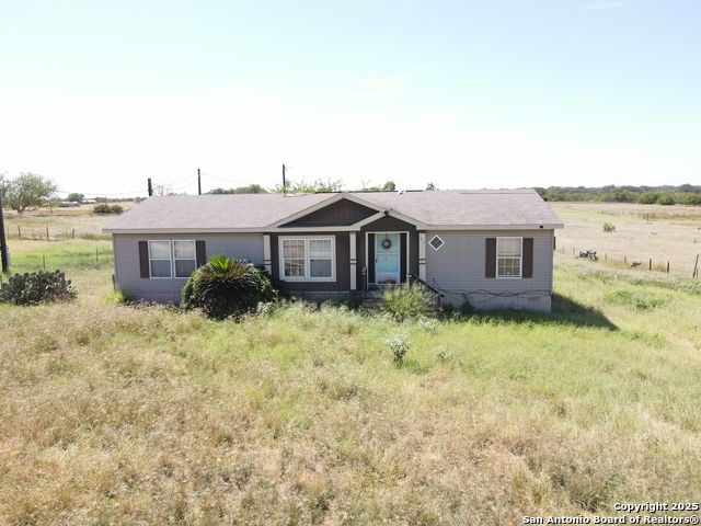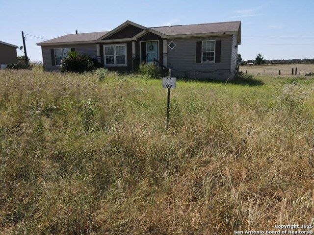 Welcome to 480 Brooks Lane - a charming manufactured home set on a spacious 0.5-acre lot in the heart of Poteet, TX. Surrounded by wide-open countryside and quiet views, this property offers the perfect setting for those seeking space, privacy, and potential. This single-story home features a cozy covered front porch, a functional layout, and mature native landscaping. The property is fully equipped with utility connections, fencing on multiple sides, and a back deck shaded by mature trees-ideal for relaxing or entertaining outdoors. Enjoy the freedom of rural living with no HOA, room for gardening, small livestock, or simply enjoying the open space. Located on a quiet road with easy access to nearby towns, this is a great opportunity for investors, homesteaders, or first-time buyers looking to escape the hustle. Don't miss your chance to own a piece of Texas country charm!