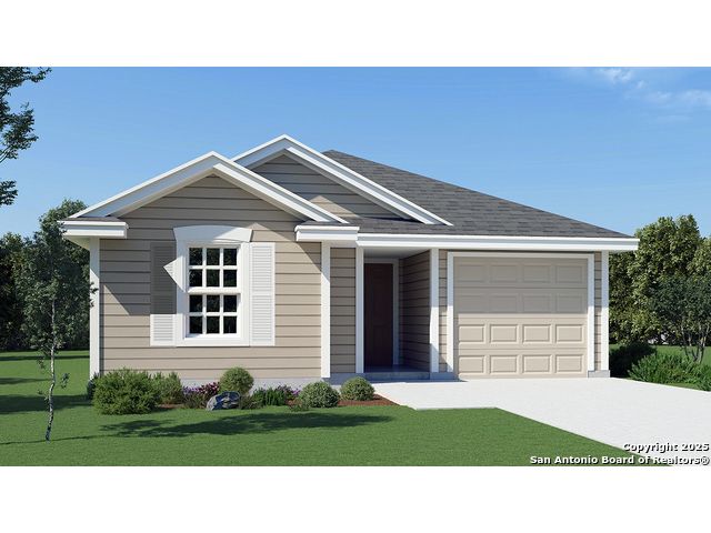 Step into The Tobin floorplan at Redbird Ranch in San Antonio, TX, a single-story home featuring 3 bedrooms and 2 bathrooms. The Tobin also offers 2 classic exterior with siding, a 1-car garage and 1412 square feet of comfortable living space. The Tobin features an open-concept layout that blends seamlessly to create the perfect every day space designed with you in mind. An elongated foyer leads you to the kitchen and dining space before flowing into a grand living room. The kitchen features quartz countertops, gleaming stainless steel appliances, shaker style cabinets and an eat-in bar that overlooks the dining area. Your main bedroom suite is located off the living area toward the back of the home and includes a walk-in closet and a relaxing bathroom space. The ensuite bathroom includes a single vanity sink with a spacious quartz counter top, shaker style cabinets and combined shower and bathtub. You'll find quality carpet and spacious closets in all of your secondary bedrooms, located off the front foyer of the home. Use these rooms as offices, playrooms or other bonus spaces. Head out the back door located off the living room to find a fully landscaped yard with a state-of-the-art irrigation system. Additional features include sheet vinyl flooring in entry, living room, and all wet areas, quartz counter tops in all bathrooms and our HOME IS CONNECTED base package. Using one central hub that talks to all the devices in your home, you can control the lights, thermostat and locks, all from your cellular device.
