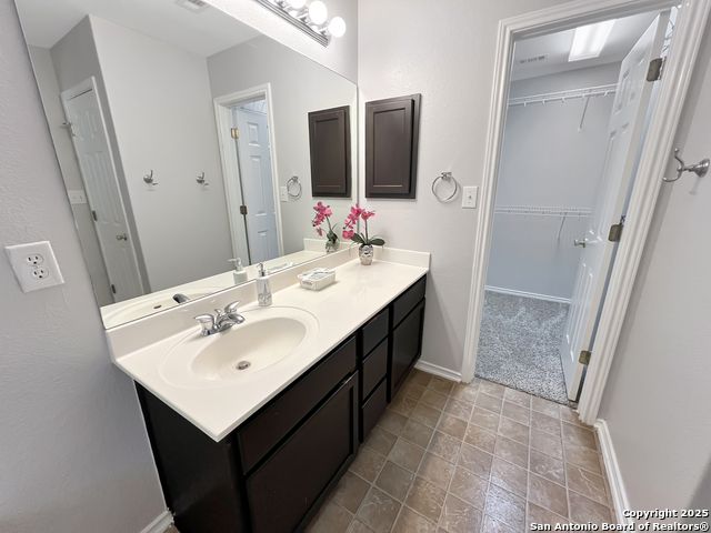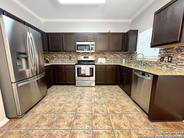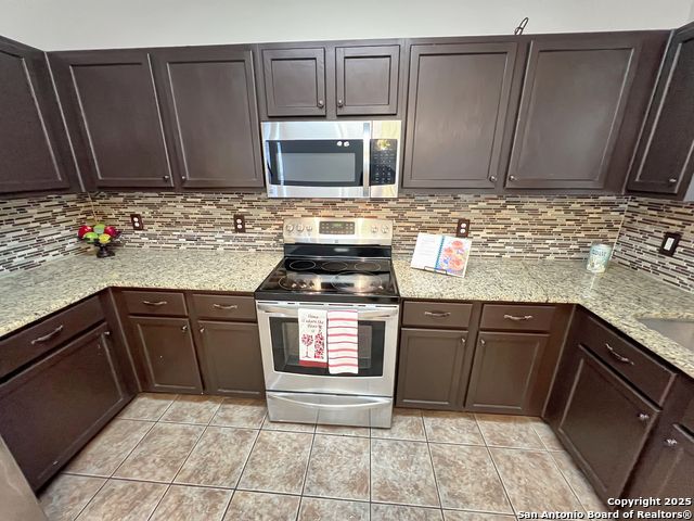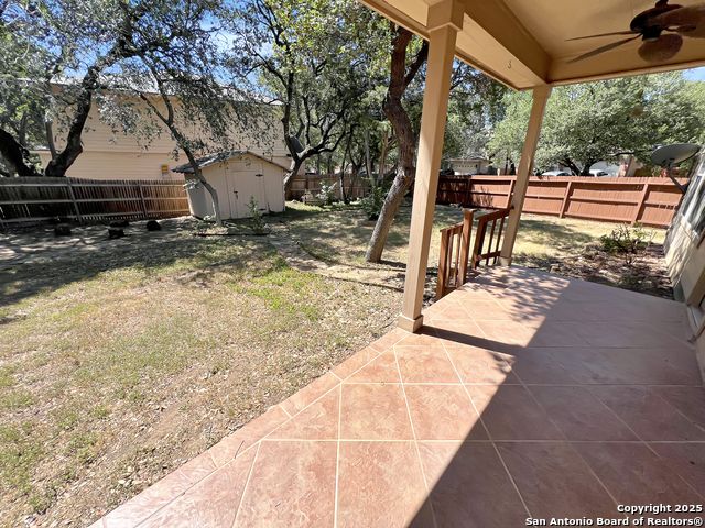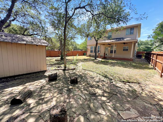 Beautiful 3 Bed 2.5 Bath 1889 sq ft Home on Corner Lot. New Interior Paint throughout, New Carpets in the Bedrooms. All Tile Downstairs. Formal Dining Room, Large Living Room. Open Kitchen w/Beautiful Granite Counters, Tile Backsplash, Breakfast Nook. Stainless Appliances including Fridge, Flat-top Stove, Microwave, Dishwasher. Large Game Room Upstairs w/Dark Laminate Floors. Master Bed w/Ceiling Fan, Walk-in Closet. Master Bath with Separate Shower/Garden Tub, Dual Sinks. Large Fenced Yard with Covered Patio, Storage Shed, lots of shade from Mature Trees. 2 Car Garage with Opener. Community Pool, Playground. Near 1604, Shopping, 281, I-35, Randolph, Fort Sam.