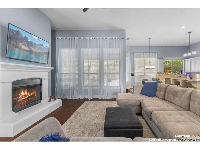 Located on a quarter-acre hilltop lot in the Vistas of Mountain Lodge near Stone Oak, this 2,708 sq. ft. residence offers 4 bedrooms and 3 bathrooms in a thoughtfully designed layout. A spacious 200+ sq. ft. front deck sets the stage for enjoying breathtaking sunsets and scenic hilltop views. Inside, the home showcases elegant crown molding, distinctive trim work, custom lighting, stainless steel appliances, and 8-foot doorways throughout. Recent upgrades include two new AC units for year-round comfort. The primary suite is highlighted by bowed windows and an impressive 18-foot walk-in closet, along with numerous upscale finishes throughout. Step outside to your private pool-just 3 years old-perfect for relaxing weekends, entertaining guests, or unwinding after a long day. With generous deck space and a serene atmosphere, this outdoor retreat offers the ideal blend of leisure and luxury.
