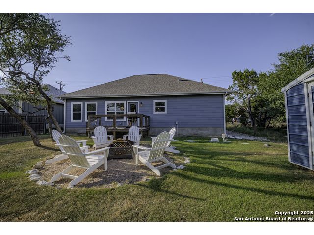 THIS IS YOUR NEXT HOME! Nestled in the highly desirable Canyon Lake Hills community, just a short walk to breathtaking lake views, this pristine 2020-built home offers the perfect blend of comfort and nature. Boasting 3 bedrooms, 2 bathrooms, and 1,428 sq ft of beautifully designed living space, this home features an open floor plan, all-tile flooring throughout, custom cabinets, and granite countertops in both the kitchen and bathrooms. Relax on the charming front porch or unwind on the spacious wooden back deck while enjoying the peaceful wildlife and mature oak trees that surround the property. Featuring a 4x12 metal utility shed, walk-in shower, and close proximity to two nearby boat docks make this home a true gem. Whether you're sipping coffee at sunrise or gathering around the fire pit at sunset, this Canyon Lake retreat offers the lake lifestyle you've been dreaming of or the perfect Airbnb business!