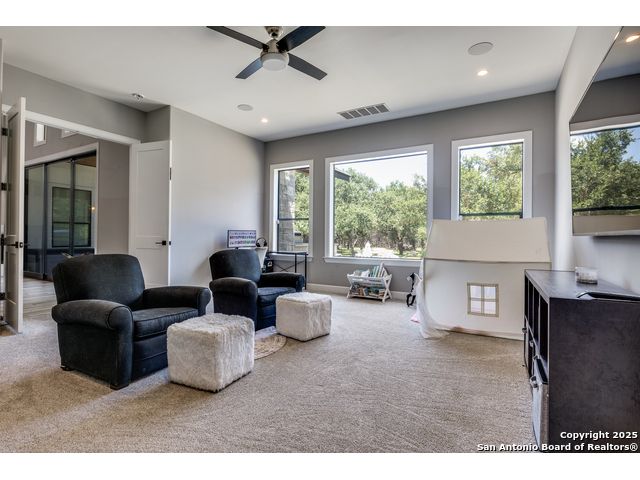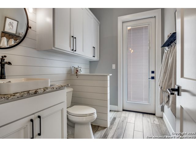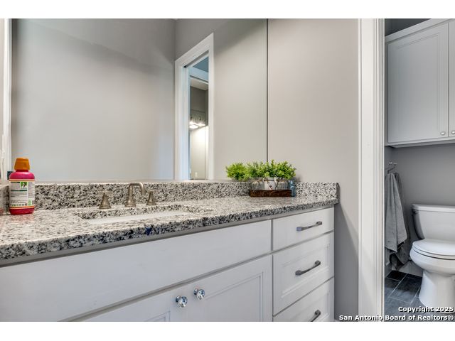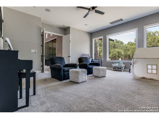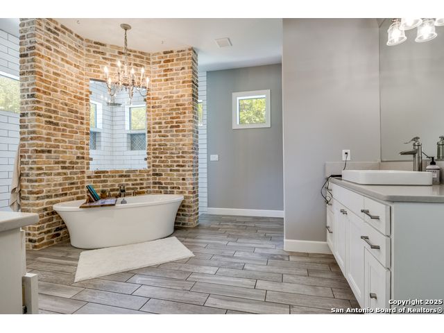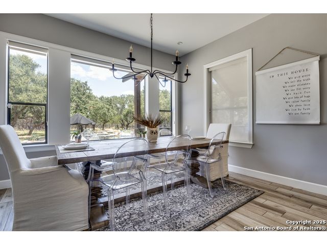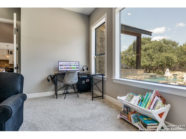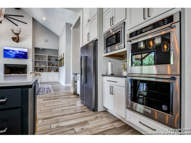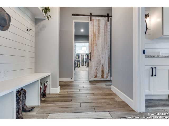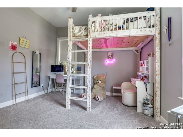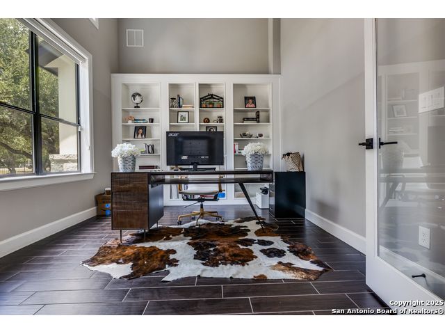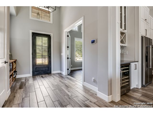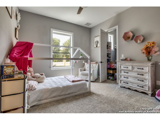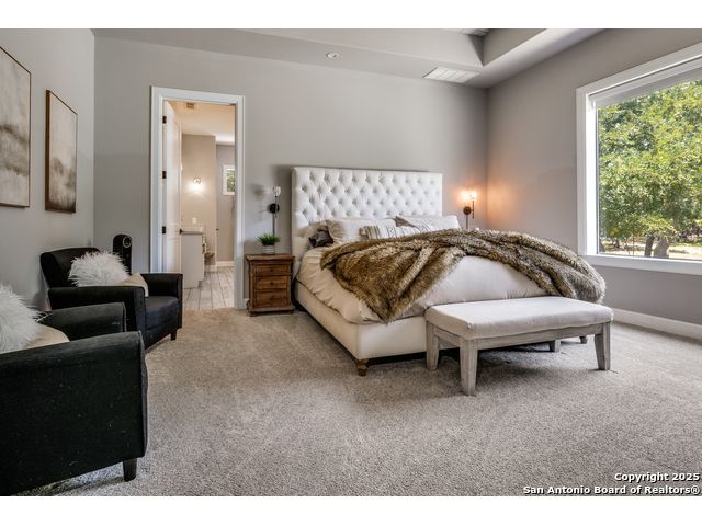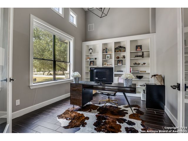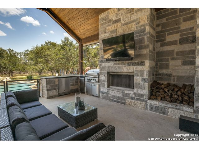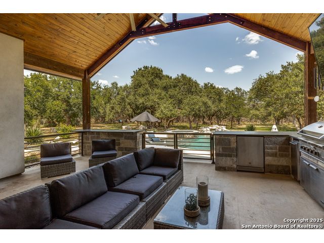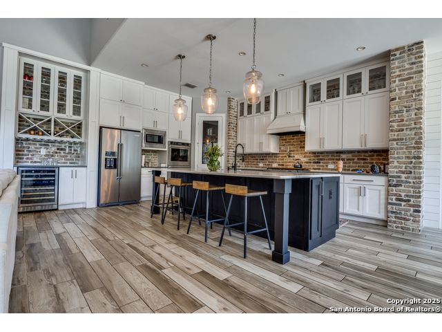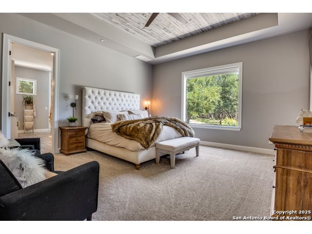 Stunning 5-bedroom 3.5-bathroom one story home with pool and dual primary suites on 1 acre lot. As you step through the front door you are greeted by elegant flooring, extremely high ceilings and an abundance of natural light. The gourmet kitchen with Chicago brick accent wall is just one of many highlights of this one of a kind home. With a humongous Cambria Brittanicca matte-finished island in its center, custom cabinets & lighting, dual ovens, a six-burner gas stove, a walk-in pantry and a wine fridge this kitchen has everything you could need and want. The primary suite, with its magazine like en-suite, is split from the rest of the house for maximum privacy and will take your breath away: Chicago Brick walk-through shower with rainfall shower heads, standalone soaking tub, his & hers vanities, a boutique style walk-in closet, shiplap tray ceiling in the bedroom and windows throughout to admire your backyard retreat. On the opposite side of the home, connected through an amazing flex space that could be used as game/flex/movie room; gym or office, you will find 3 bedrooms, one of which has its private en-suite, perfect for a guest or mother in-law suite, and two additional bathrooms. The 5th bedroom (currently being used as an office) is located towards the front of the home and has its own secret safe room. The living area with wood/gas burning fireplace is open to both the kitchen & dining area, and also houses the gates to heaven, in this case a 10-foot sliding door to your own backyard oasis. Enjoy the beautiful Texas weather under your oversized covered patio with wood fireplace and gas grill, perfect for BBQ's with family, friends & neighbors. The resort style pool with hot tub and waterfall feature is perfect to relax and enjoy a quiet evening, or have the entire family over for a large get-together. The neighborhood amenities include a park and playground with sand volleyball, large pool, fishing spots, and scenic jogging trails. Conveniently located just minutes off HWY 281 you are close to the lake, schools, shopping, restaurants, and all other attractions this area has to offer. Schedule your private showing today!