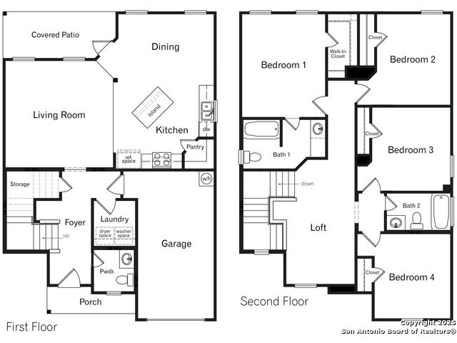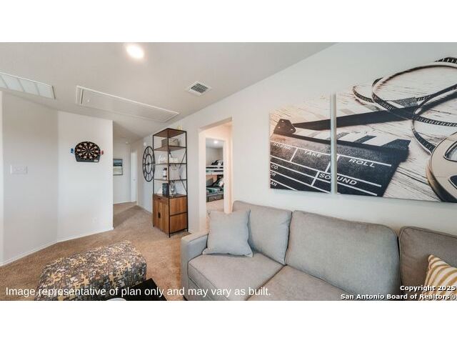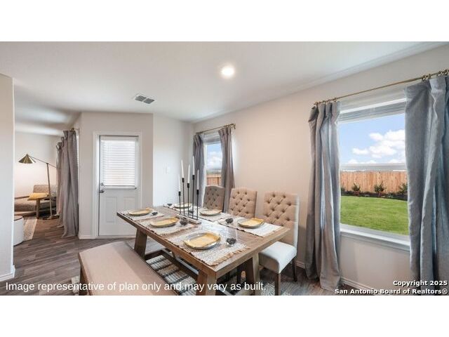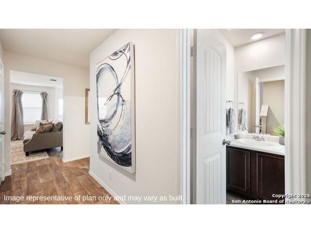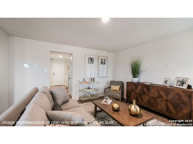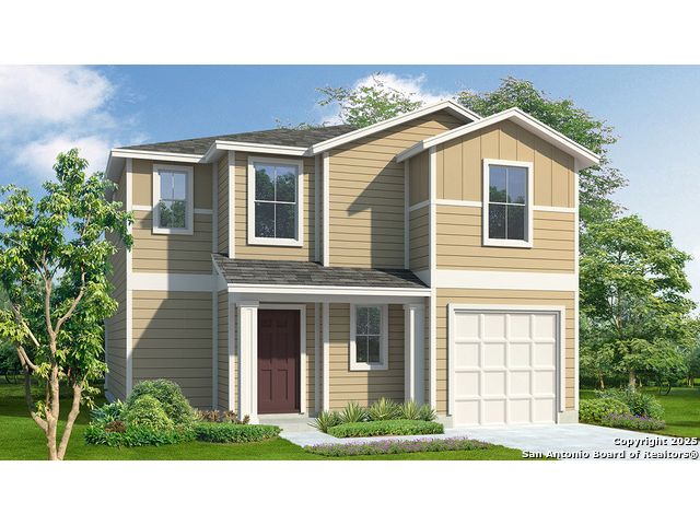 The Bowie plan is one of our two-story homes featured in our Redbird Ranch community in San Antonio, TX. This new home layout offers 3 classic front exteriors, 4 bedrooms, 2.5 bathrooms, a 1-car garage and 1839 square feet of comfortable living. An inviting front porch invites you to step inside The Bowie where you will find a foyer opening to a combined living room, dining room and kitchen area. You'll enjoy preparing meals in your modern kitchen with stainless steel appliances, quartz countertops and shaker style cabinets. Spend time together gathered around the large kitchen island with plenty of workspace and room for bar seating. A spacious loft or game room is located at the top of the stairs, providing plenty of room for countless game nights or movie nights. You will also find all bedrooms and a second full bathroom upstairs. Located toward the back of the home, your primary bedroom features an attractive attached bathroom with a combined bathtub and shower, a single vanity sink with a spacious quartz countertop and a walk-in closet. Head back downstairs and find an under-the-stairs storage closet, a spacious laundry room and a covered patio (per plan) located off the back of the home, perfect for relaxing and enjoying your fully landscaped and irrigated yard. Additional features of The Bowie include sheet vinyl at entry, downstairs living areas and wet areas and quartz countertops and shaker style cabinetry throughout the home. This home includes our HOME IS CONNECTED base package. Using one central hub that talks to all the devices in your home, you can control the lights, thermostat and locks, all from your cellular device.
