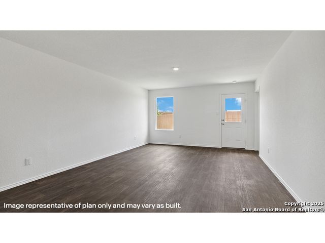 The Caprock is a charming one-story home featured at Stonehill in San Antonio, TX. Featuring 2 classic front exteriors, this 3 bedroom, 2 bathroom home also offers 1435 square feet of living space and a 2-car garage. A front porch (per plan) welcomes you into the home and opens to the gourmet kitchen which includes quartz counter tops, quality cabinets, stainless steel appliances and an open concept floorplan with the kitchen flowing seamlessly into the dining room and living room. The main bedroom has an attractive ensuite bathroom that features a quartz vanity countertop and quality cabinetry. Enjoy additional storage with a spacious walk-in closet located off of the primary bathroom. Your secondary bedrooms all feature quality carpet flooring and a closet, and can be used as bedrooms, offices, work out spaces or other bonus rooms. The possibilities are endless with The Caprock floor plan. Additional features include sheet vinyl flooring in entry, living room, and all wet areas, quartz counter tops in all bathrooms and HOME IS CONNECTED base package. Using one central hub that talks to all the devices in your home, you can control the lights, thermostat and locks, all from your cellular device.