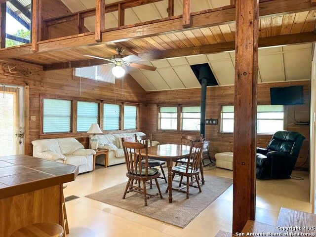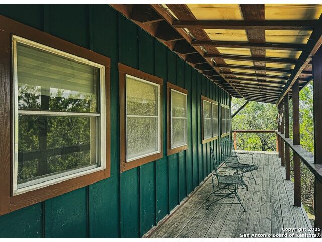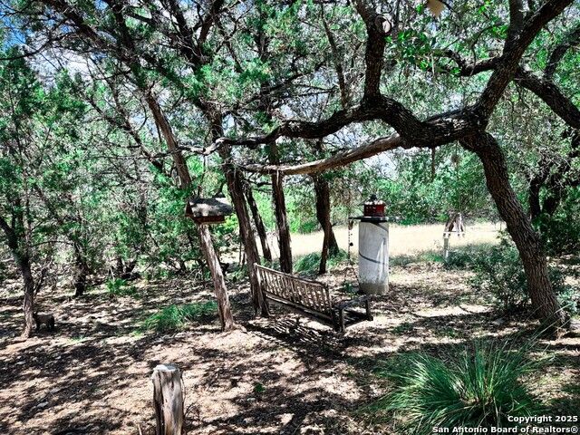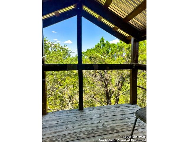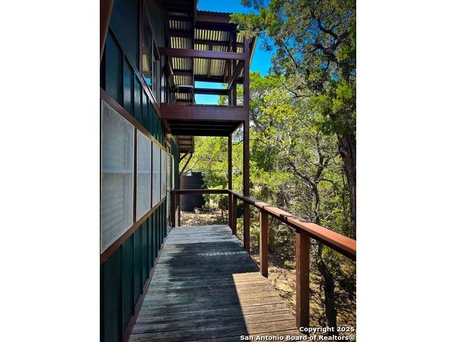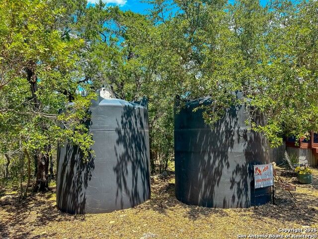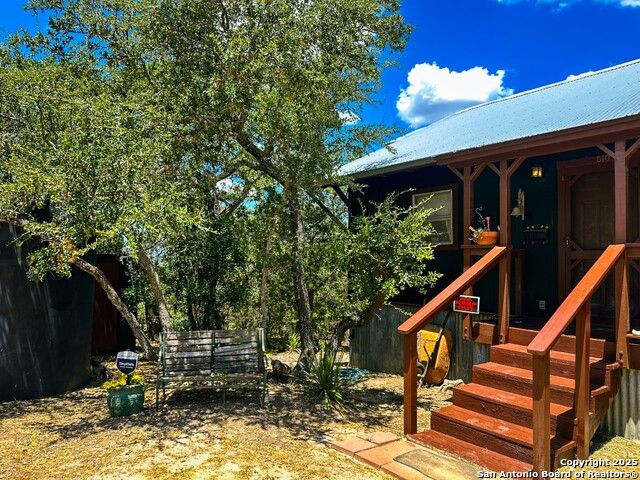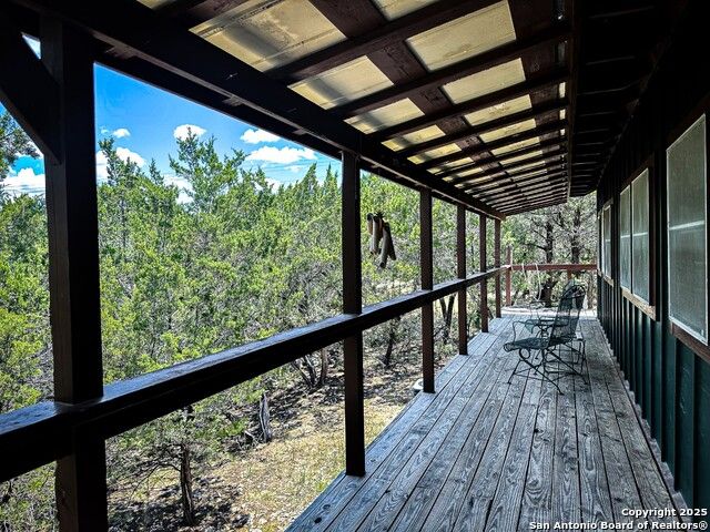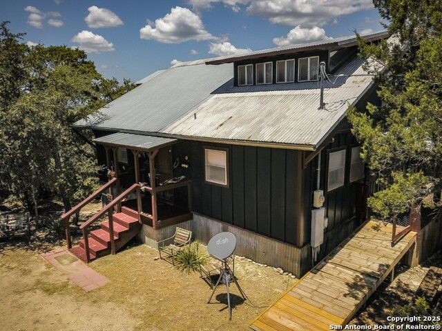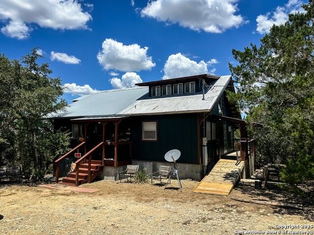 Cabin in the country yet close to the city of San Antonio. Central AC/Heat with backup propane heat. One Bedroom downstairs and and upstairs loft, one large bathroom with the utility/closet. Open concept kitchen and living room with a Baltic Birch Flooring. Kitchen has a big island with eat in breakfast bar. Wood burning stove for a comfy winter. Wrap around deck encompasses outdoor living at its best. Off Grid - Rainwater Catchment is used for water. Conventional Septic.