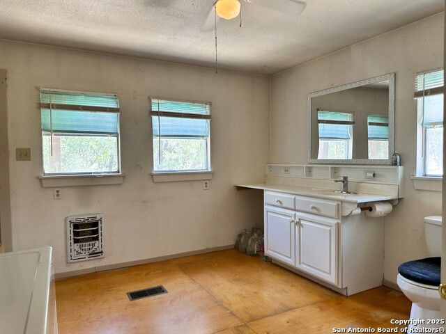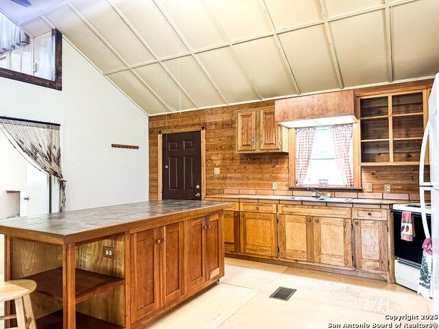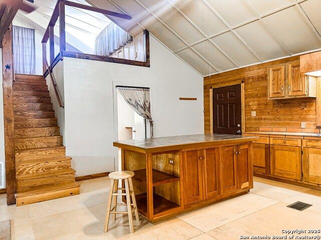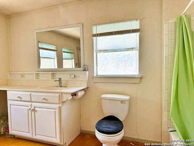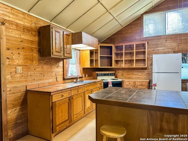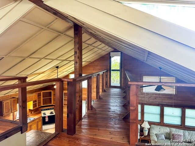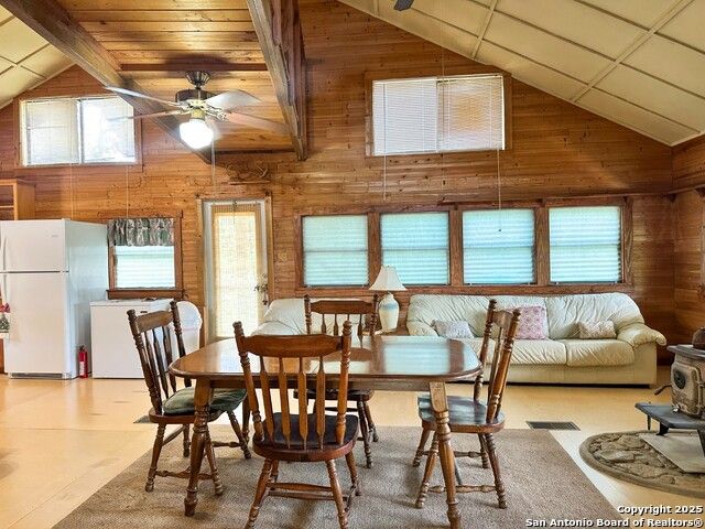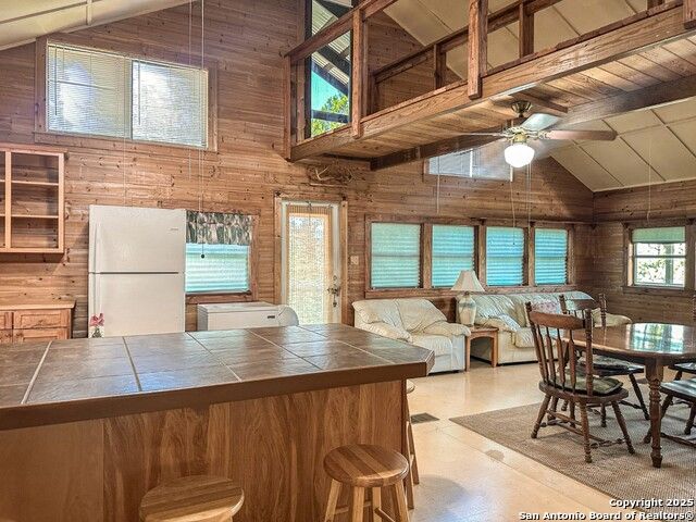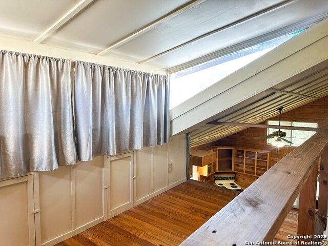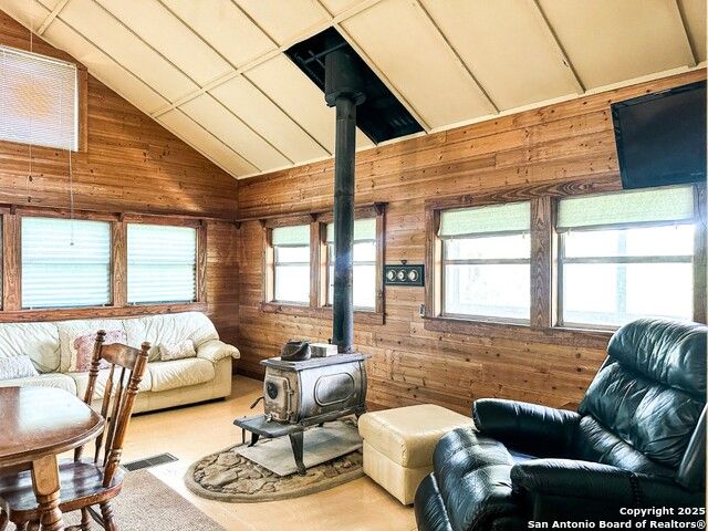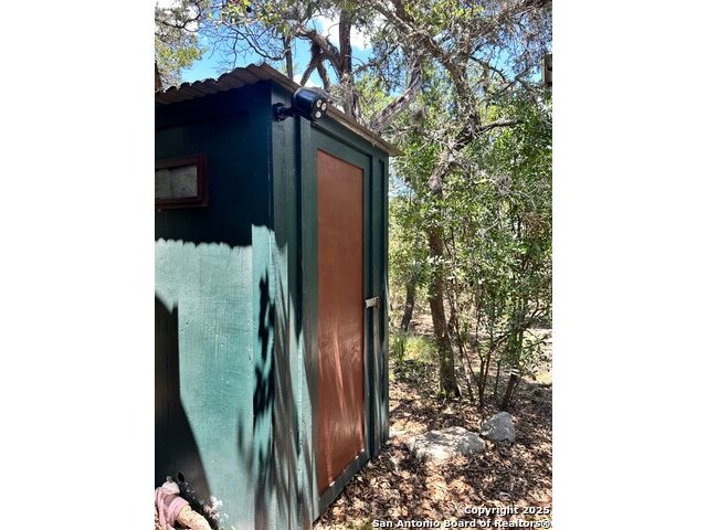 Cabin in the country yet close to the city of San Antonio. Central AC/Heat with backup propane heat. One Bedroom downstairs and and upstairs loft, one large bathroom with the utility/closet. Open concept kitchen and living room with a Baltic Birch Flooring. Kitchen has a big island with eat in breakfast bar. Wood burning stove for a comfy winter. Wrap around deck encompasses outdoor living at its best. Off Grid - Rainwater Catchment is used for water. Conventional Septic.