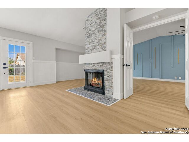 Fully Renovated 3-Bed, 3-Bath Beauty with Modern Upgrades. Move-in ready and packed with upgrades! This stunning 3-bedroom, 3-bath home features brand-new luxury vinyl plank flooring, fresh paint, and designer lighting throughout. The bright, open living area centers around a dramatic floor-to-ceiling stone fireplace and flows seamlessly into the dining space and chef's kitchen-complete with quartz counters, custom cabinetry, stylish backsplash, stainless steel appliances, and a walk-in pantry. The main-floor primary suite boasts vaulted ceilings, dual walk-in closets, and a spa-like bath with double vanities and a walk-in shower. Upstairs offers a versatile loft, two spacious bedrooms, and a beautifully tiled full bath. Enjoy your large, fenced backyard with a patio and storage shed-perfect for entertaining. Conveniently located near shopping, dining, and major highways, this home blends style, comfort, and location in one perfect package.