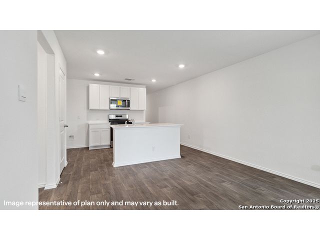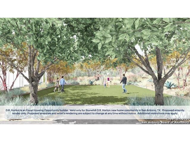 The Caprock is a charming one-story home featured at Stonehill in San Antonio, TX. Featuring 2 classic front exteriors, this 3 bedroom, 2 bathroom home also offers 1435 square feet of living space and a 2-car garage. A front porch (per plan) welcomes you into the home and opens to the gourmet kitchen which includes quartz counter tops, quality cabinets, stainless steel appliances and an open concept floorplan with the kitchen flowing seamlessly into the dining room and living room. The main bedroom has an attractive ensuite bathroom that features a quartz vanity countertop and quality cabinetry. Enjoy additional storage with a spacious walk-in closet located off of the primary bathroom. Your secondary bedrooms all feature quality carpet flooring and a closet, and can be used as bedrooms, offices, work out spaces or other bonus rooms. The possibilities are endless with The Caprock floor plan. Additional features include sheet vinyl flooring in entry, living room, and all wet areas, quartz counter tops in all bathrooms and HOME IS CONNECTED base package. Using one central hub that talks to all the devices in your home, you can control the lights, thermostat and locks, all from your cellular device.